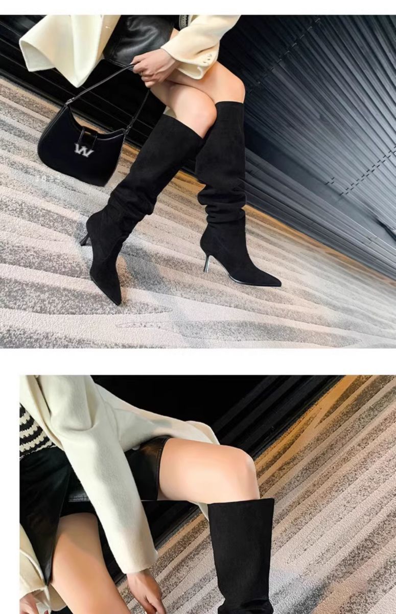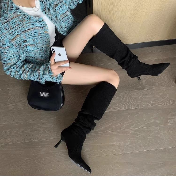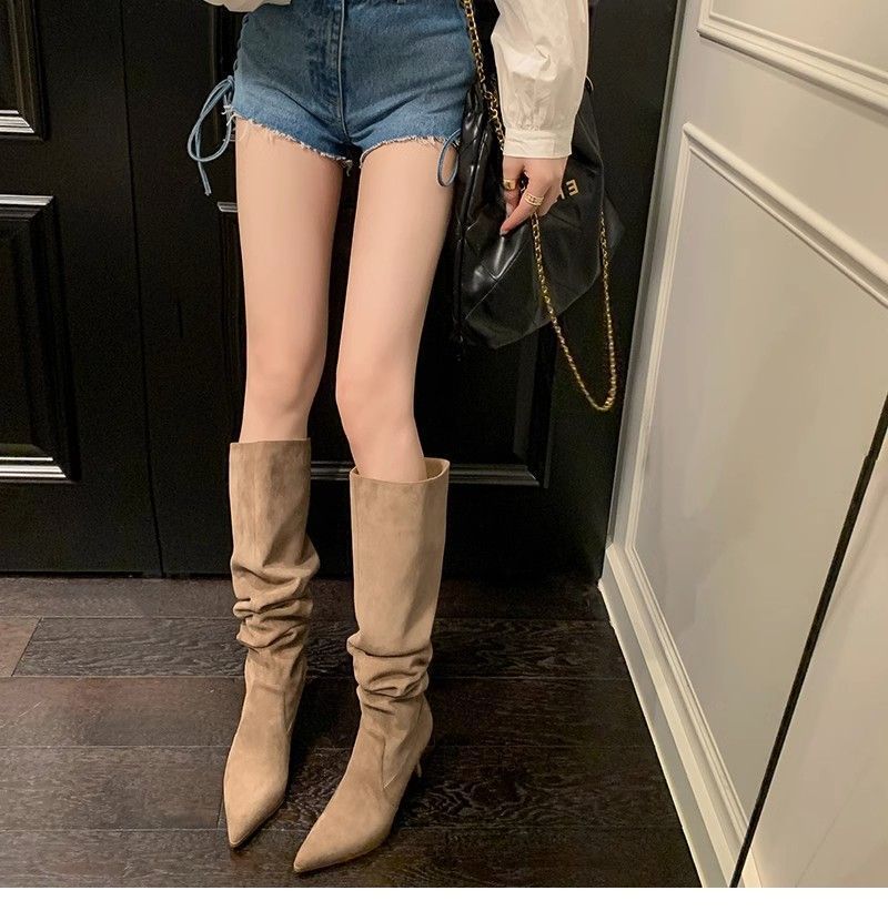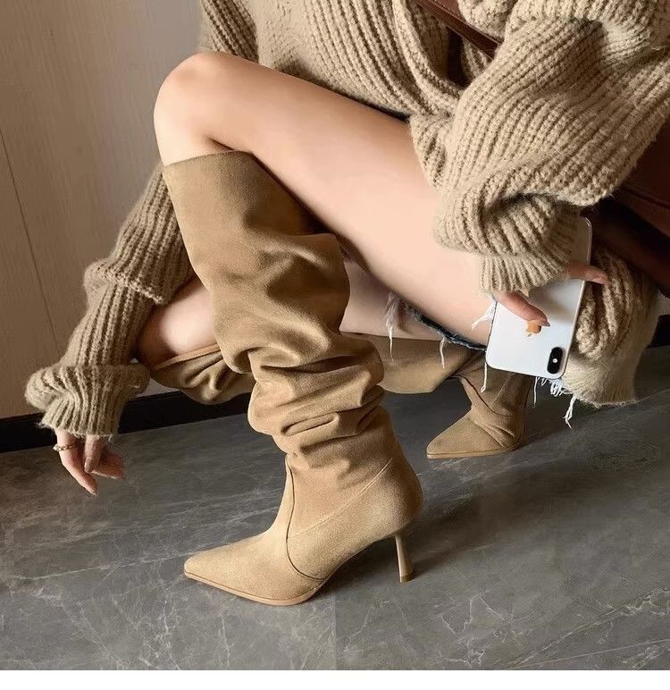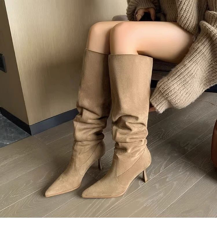 2024 새로운 여성 부츠 슬리밍 뾰족한 힙 부츠 살구색 플러스 사이즈 부츠 얇은 힐 하이 부츠 하이힐 여성용 부츠스토어 가기