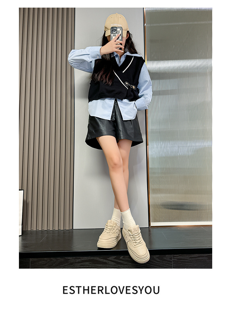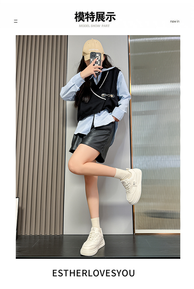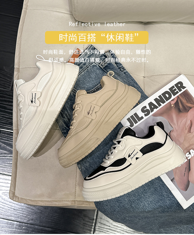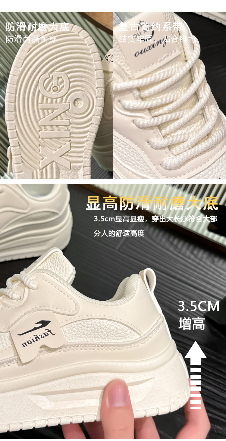 2024 봄과 가을 새로운 스포츠 캐주얼 화이트 슈즈 여성 Ins 한국식 두꺼운 가죽 올매치 싱글 레이어 슈즈 패셔너블 스니커즈