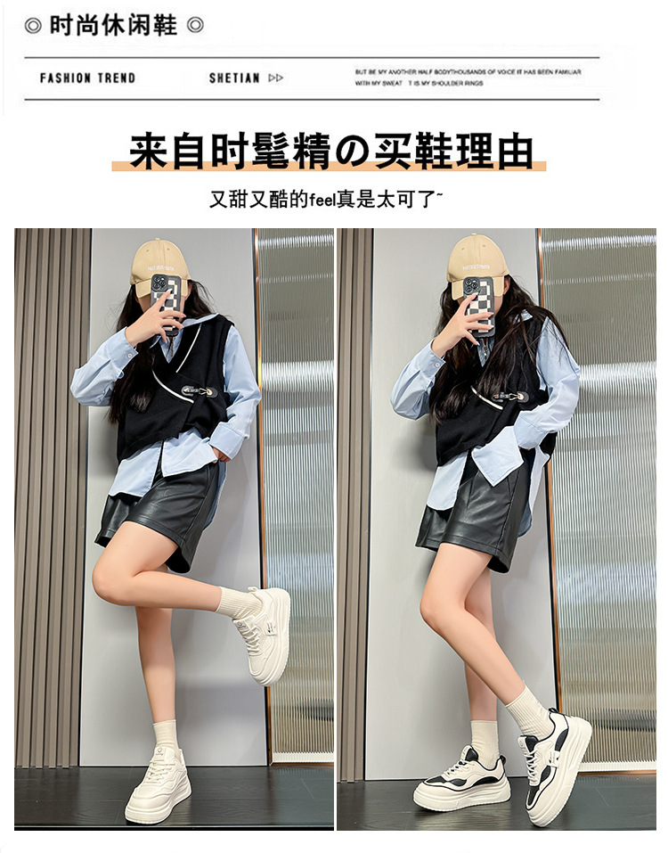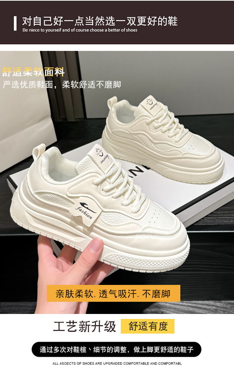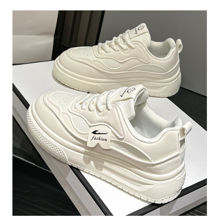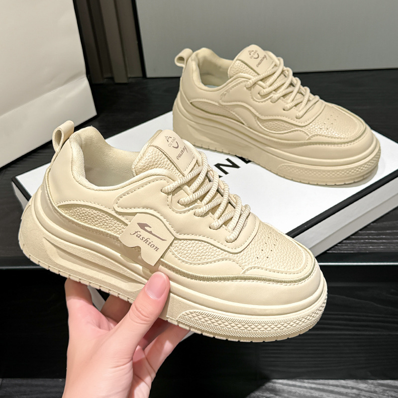 2024 봄과 가을 새로운 스포츠 캐주얼 화이트 슈즈 여성 Ins 한국식 두꺼운 가죽 올매치 싱글 레이어 슈즈 패셔너블 스니커즈스토어 가기