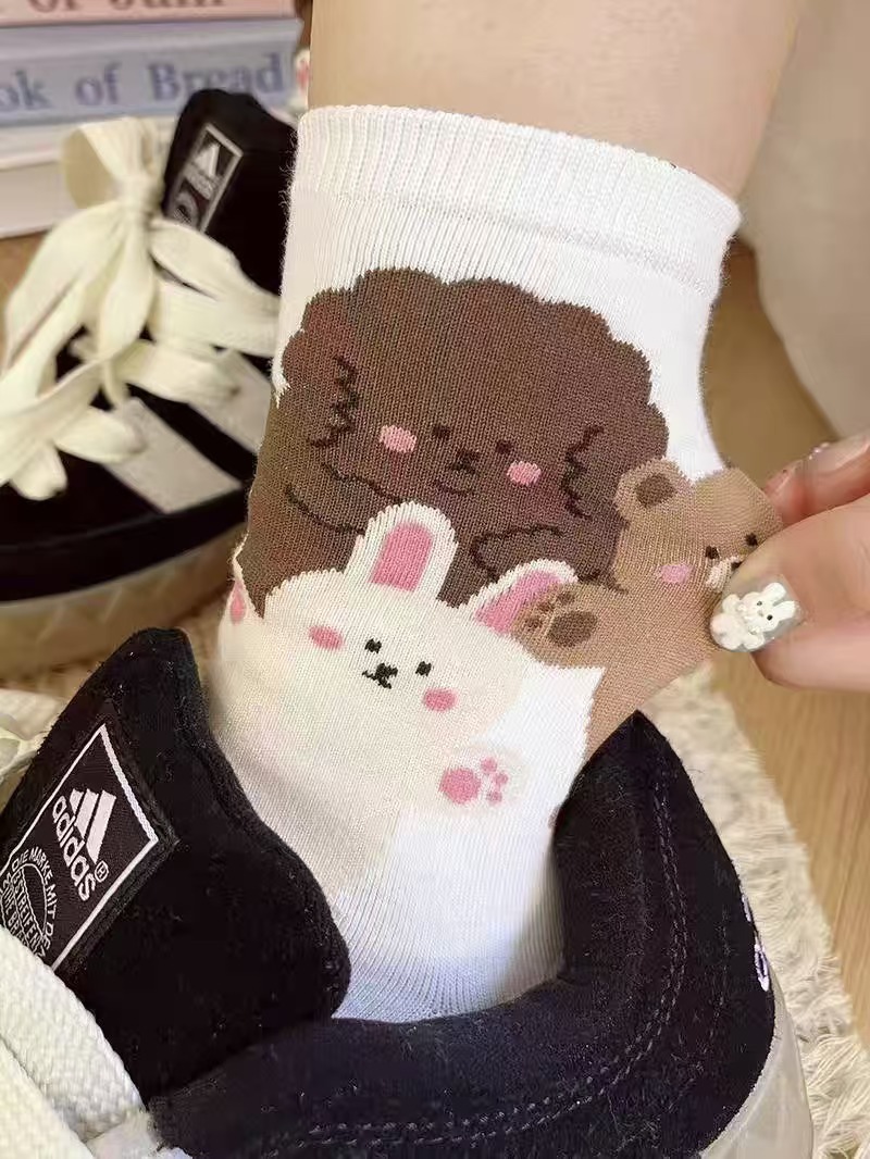 한국 양말 여성 귀여운 작은 곰 작은 토끼 강아지 카토 양말 동대문 면 양말 중형 튜브