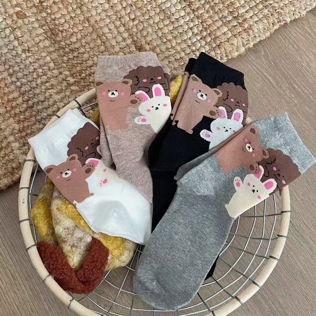한국 양말 여성 귀여운 작은 곰 작은 토끼 강아지 카토 양말 동대문 면 양말 중형 튜브스토어 가기