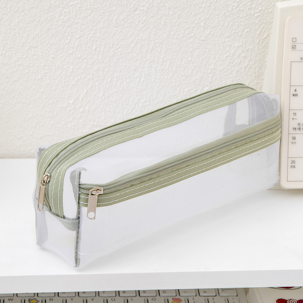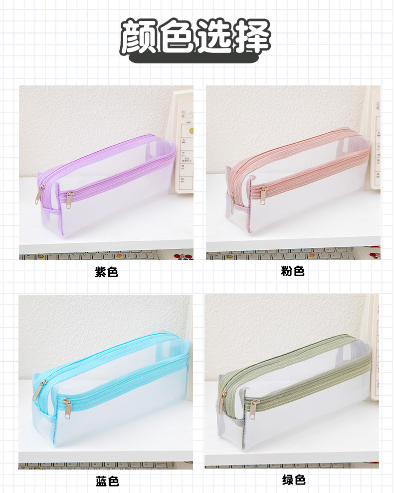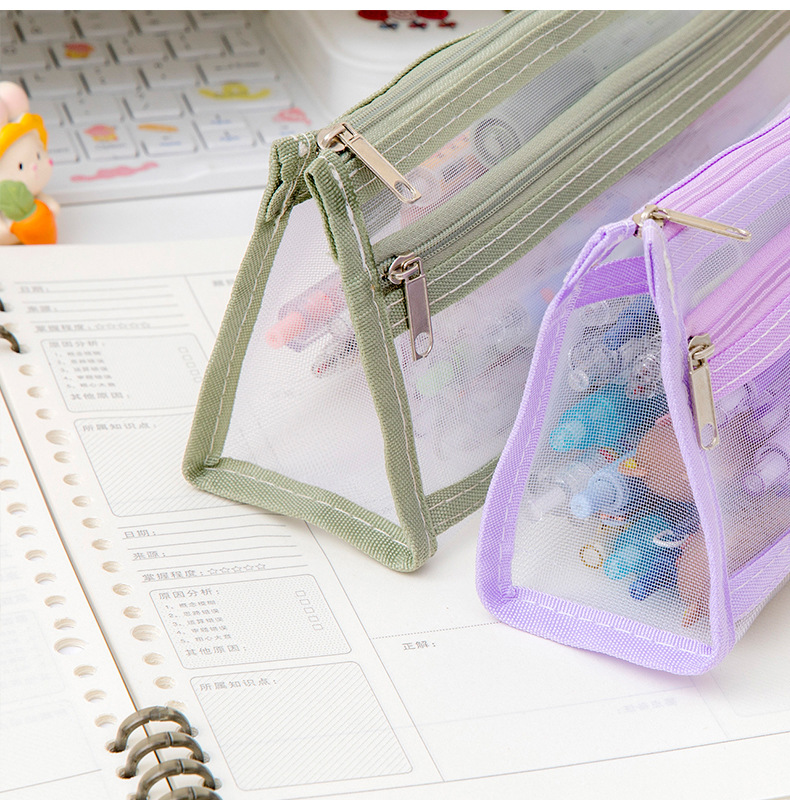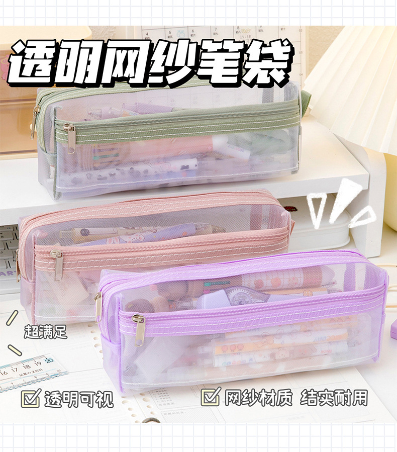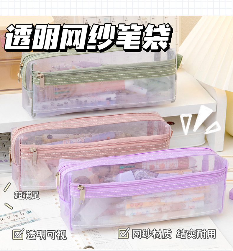 메쉬 연필 가방 더블 레이어 대용량 투명 문구 가방 학생을위한 특수 연필 가방 중학교 및 초등학교 학생 연필 가방스토어 가기