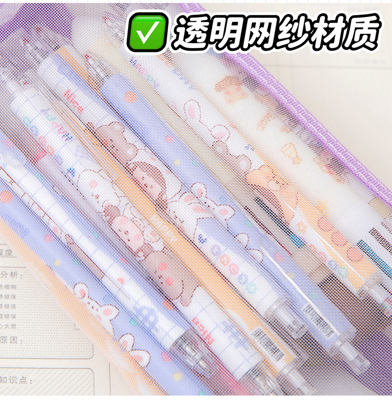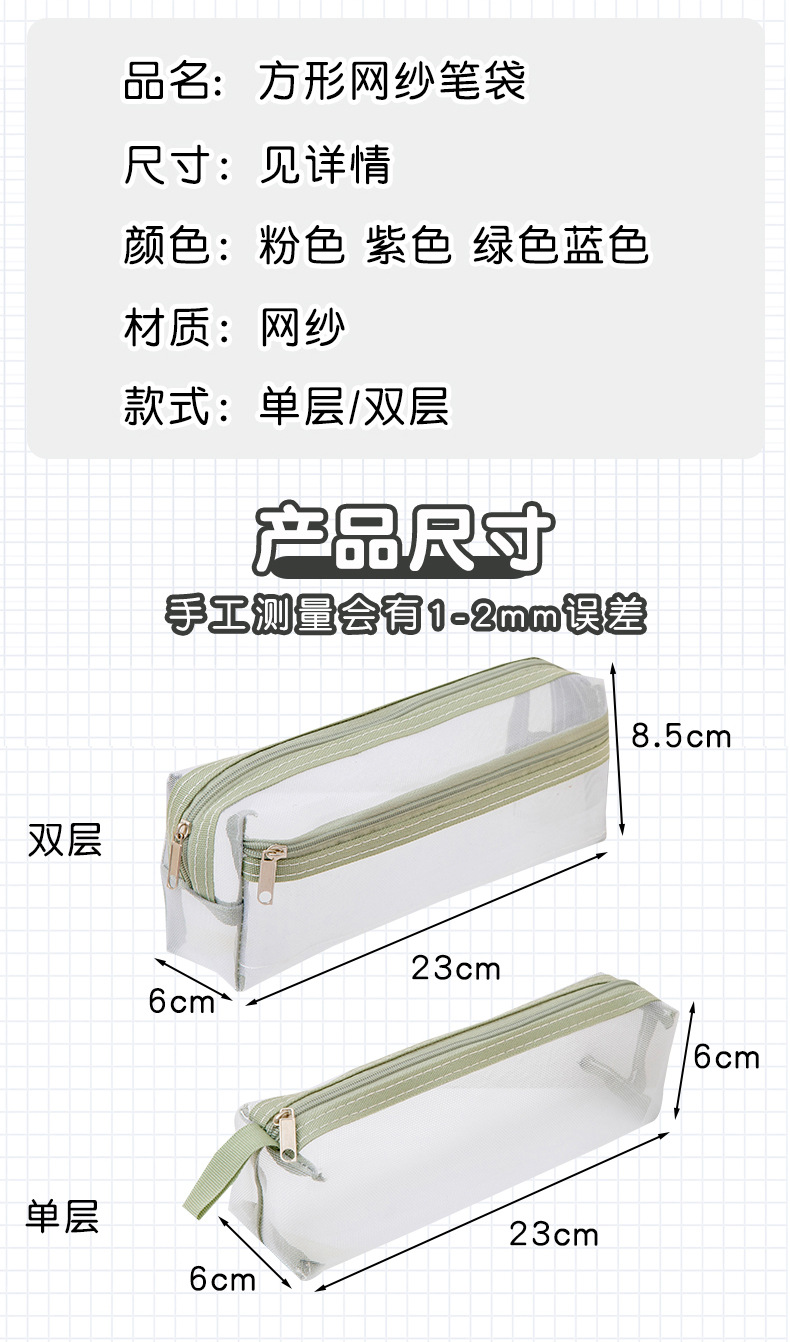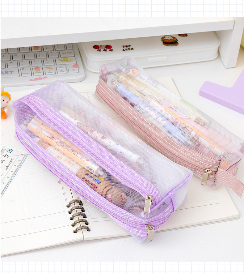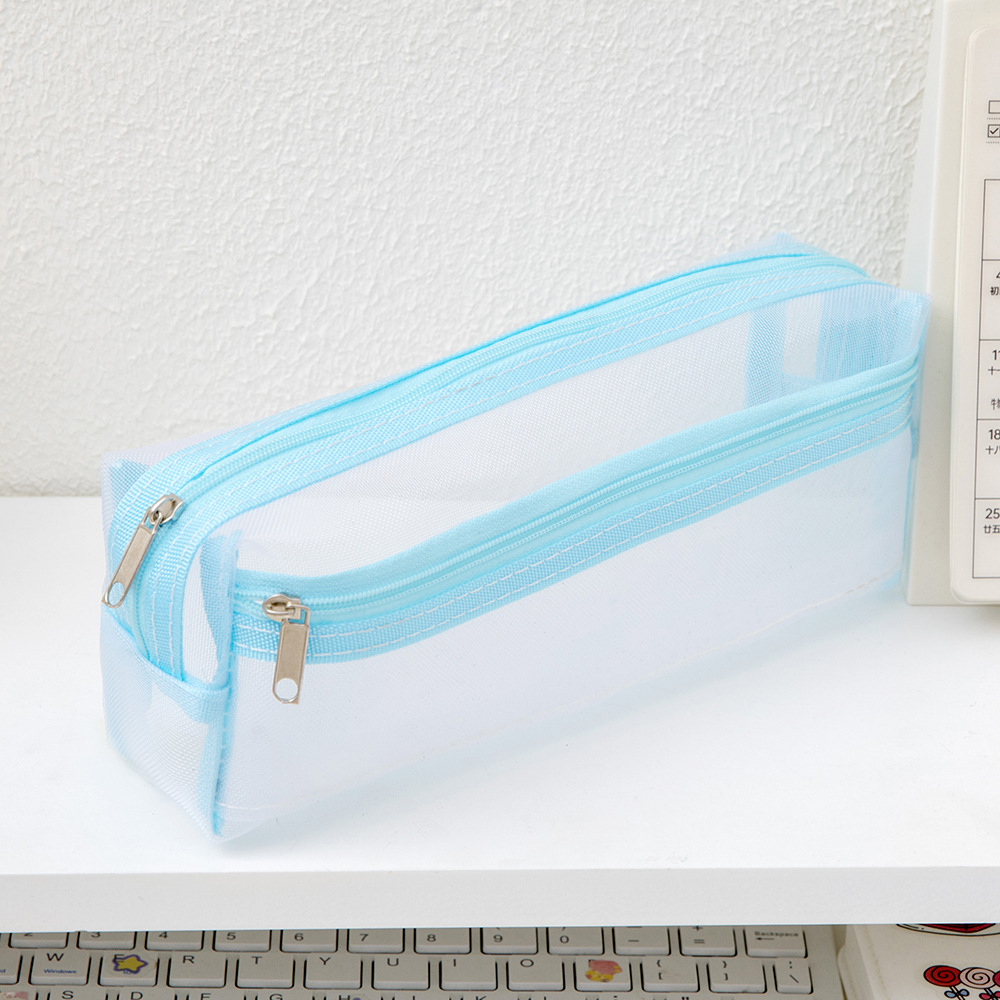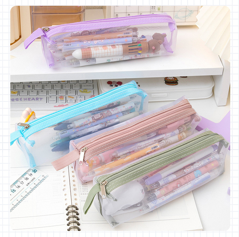 메쉬 연필 가방 더블 레이어 대용량 투명 문구 가방 학생을위한 특수 연필 가방 중학교 및 초등학교 학생 연필 가방스토어 가기