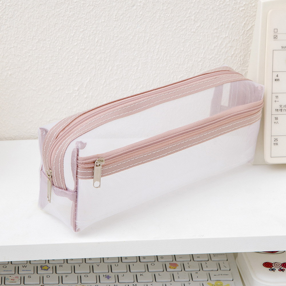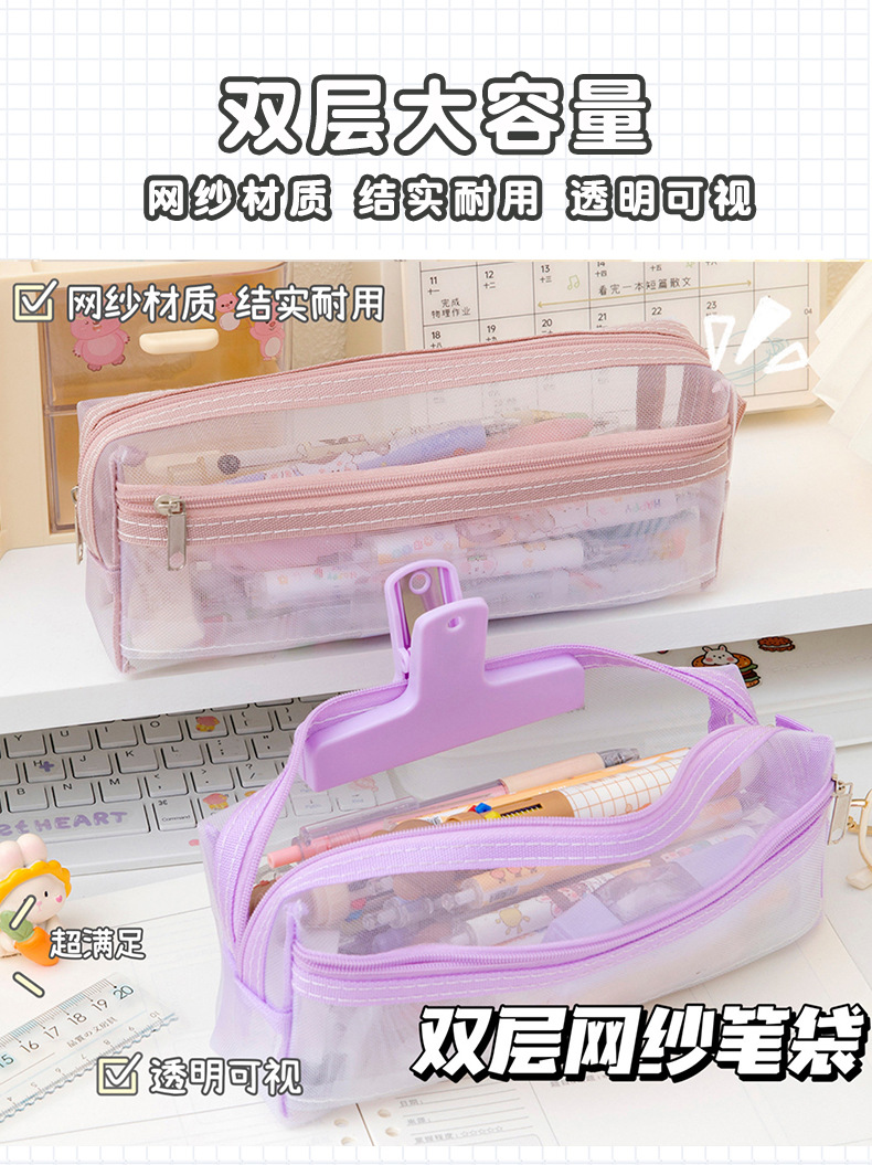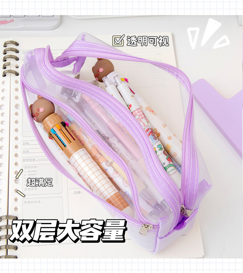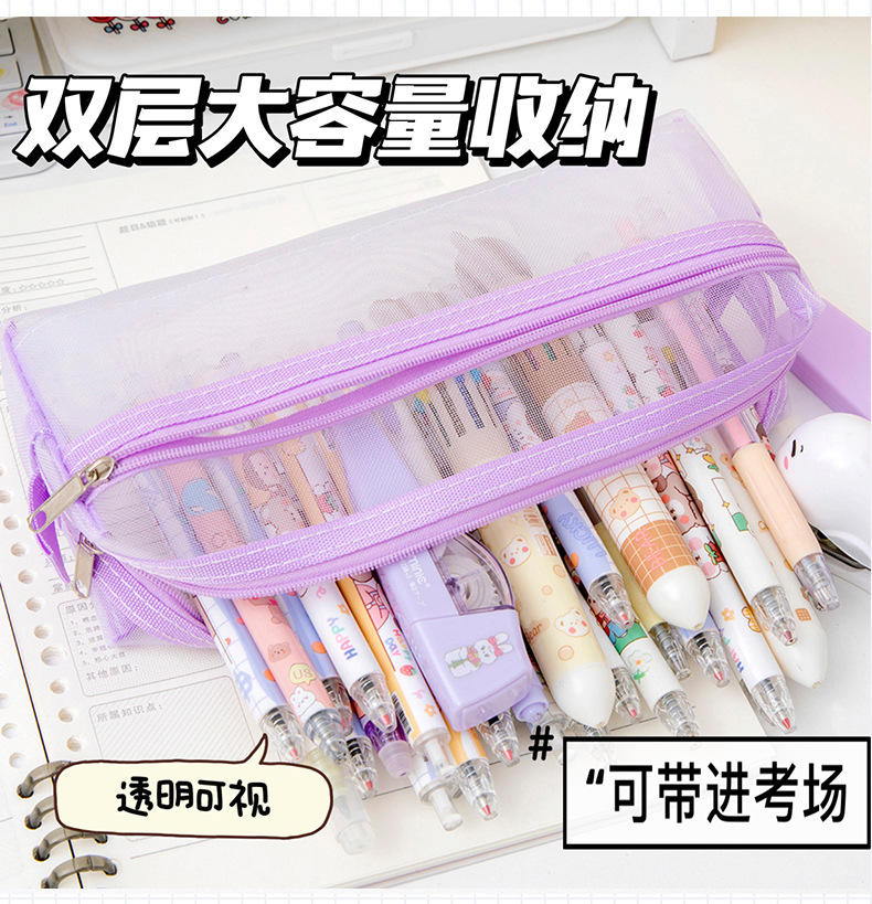 메쉬 연필 가방 더블 레이어 대용량 투명 문구 가방 학생을위한 특수 연필 가방 중학교 및 초등학교 학생 연필 가방