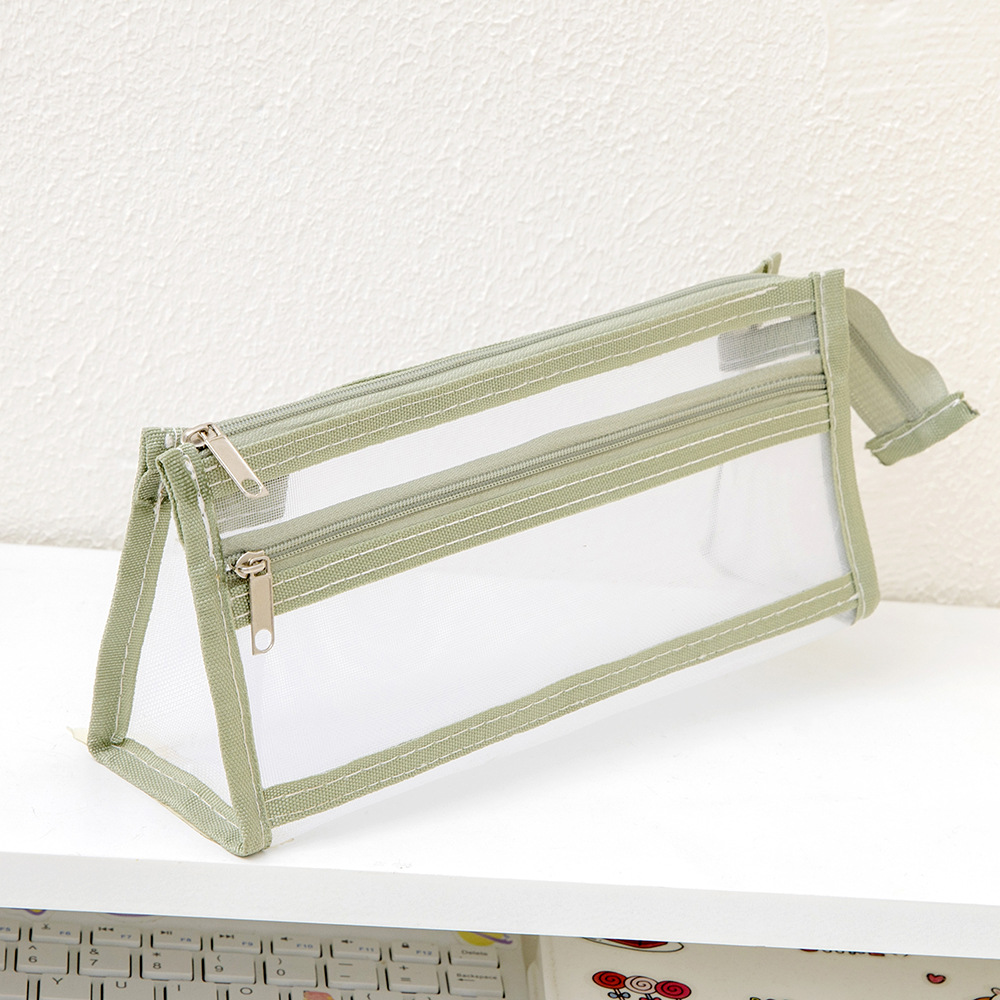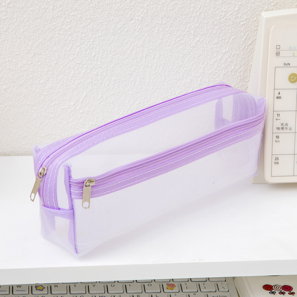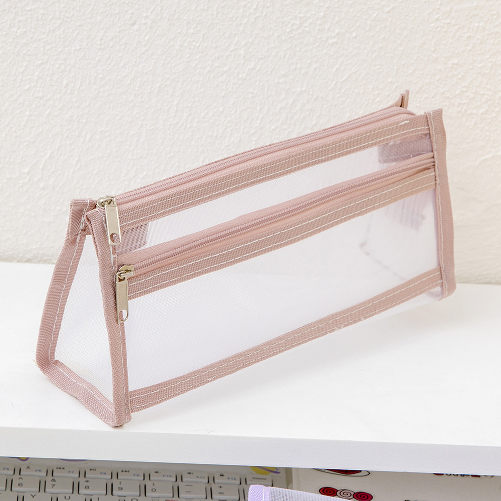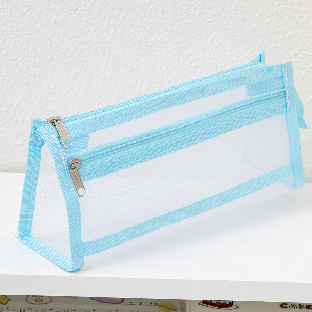 메쉬 연필 가방 더블 레이어 대용량 투명 문구 가방 학생을위한 특수 연필 가방 중학교 및 초등학교 학생 연필 가방