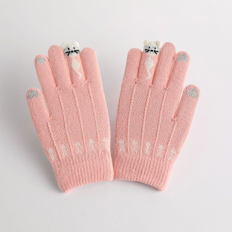 공장 도매 니트 겨울 장갑 귀여운 고양이 따뜻한 차가운 증거 터치 스크린 장갑 학생