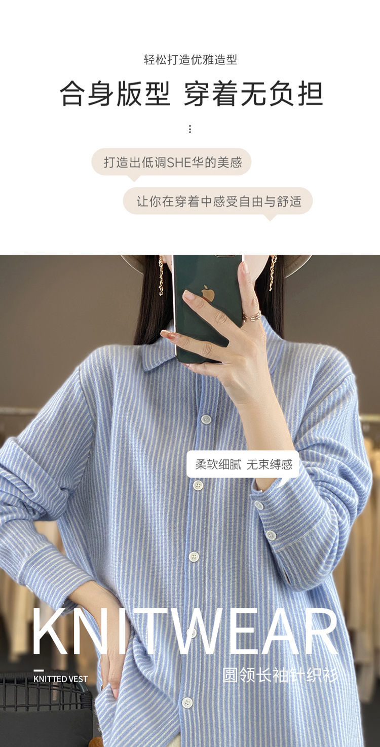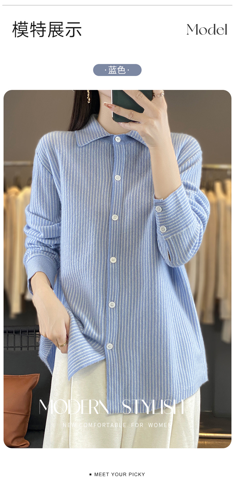 가을과 겨울 새로운 양모 카디건 여성용 폴로 칼라 한국 느슨한 줄무늬 셔츠 슬림 우아한베이스 스웨터스토어 가기