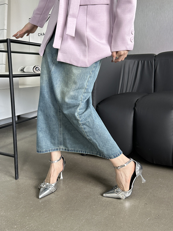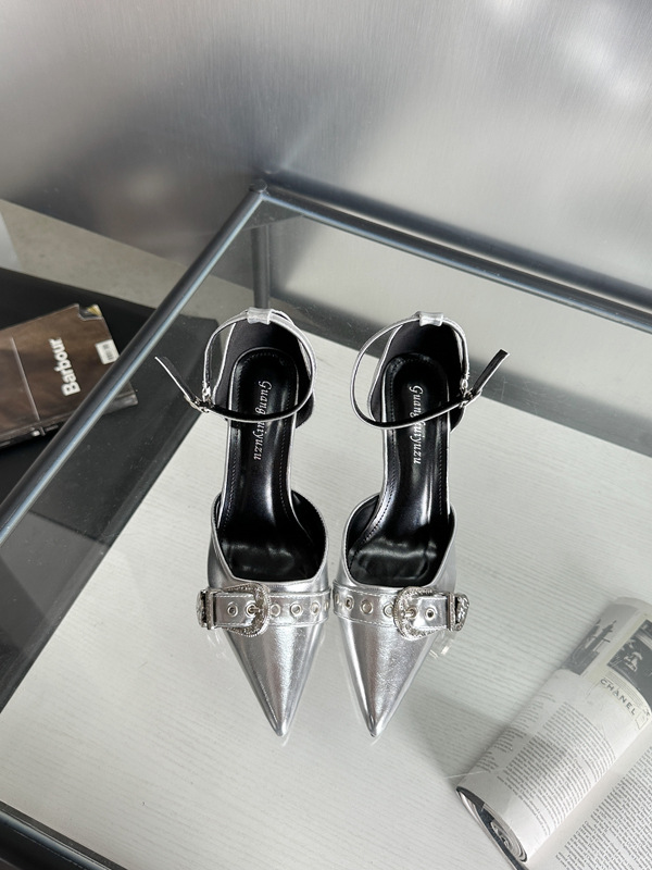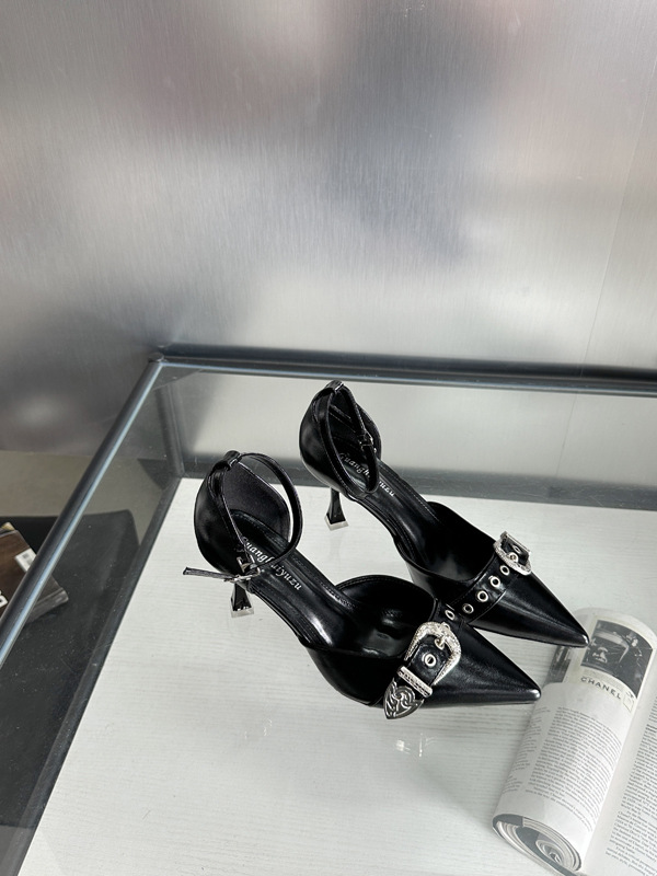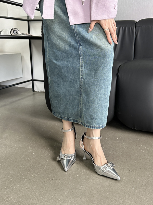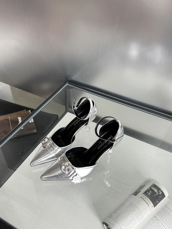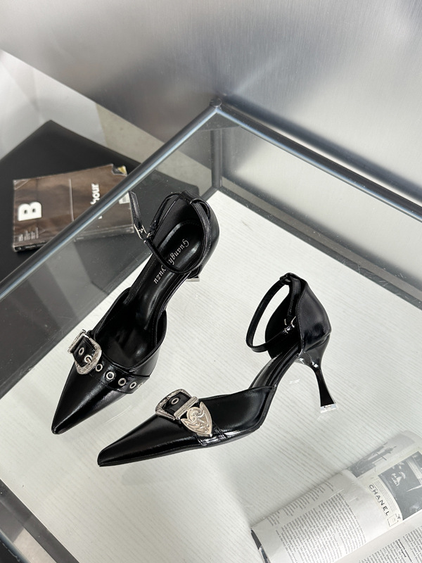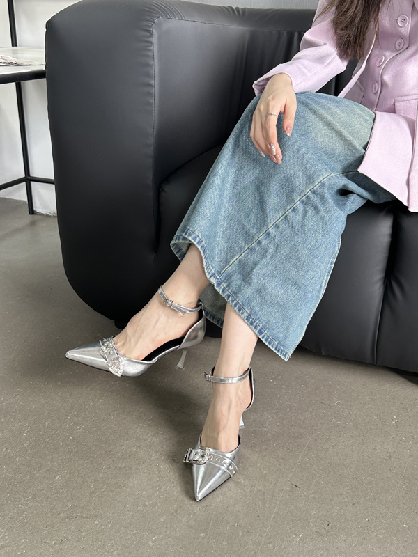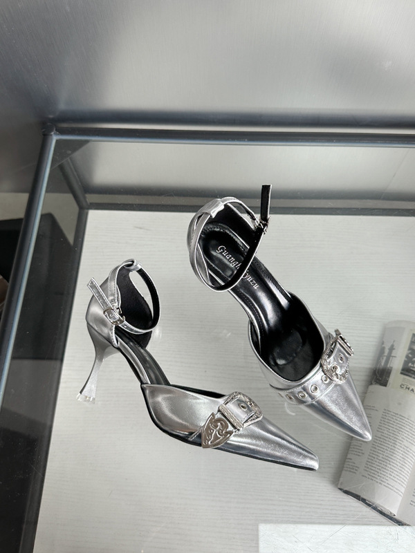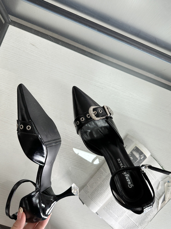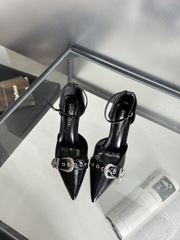 여성용 중공 샌들 높은 감각 가을 2024 새로운 프랑스 스타일 하이힐 금속 버클 뾰족한 하이힐스토어 가기
