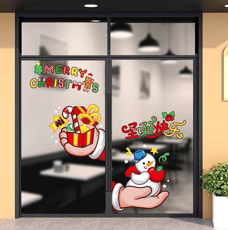 크리스마스 유리 문 스티커 쇼핑몰 상점 창 장식 선물 눈사람 창 종이 메리 크리스마스 창 스티커 정전기