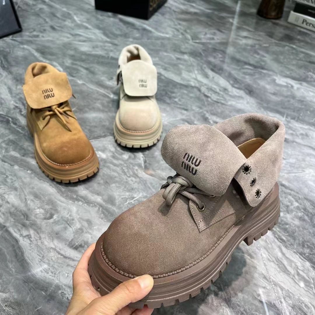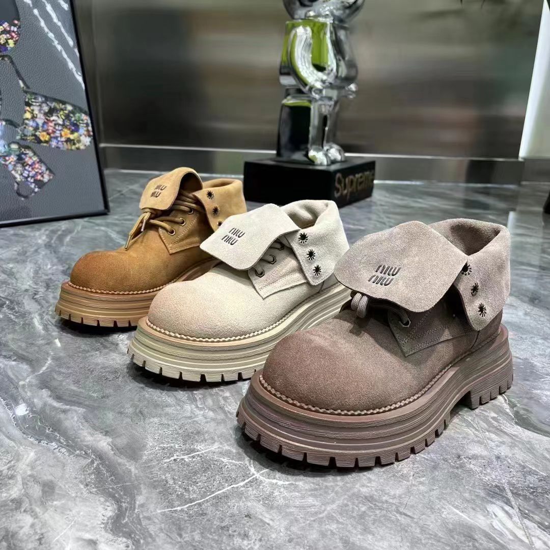 유럽 옐로우 쇼트 부츠 여자 2024 년 초가을 새 올매치 두꺼운 밑창 투웨어 쇼트 부츠 레이스 업 마틴 부츠 여성