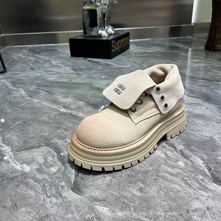 유럽 옐로우 쇼트 부츠 여자 2024 년 초가을 새 올매치 두꺼운 밑창 투웨어 쇼트 부츠 레이스 업 마틴 부츠 여성스토어 가기