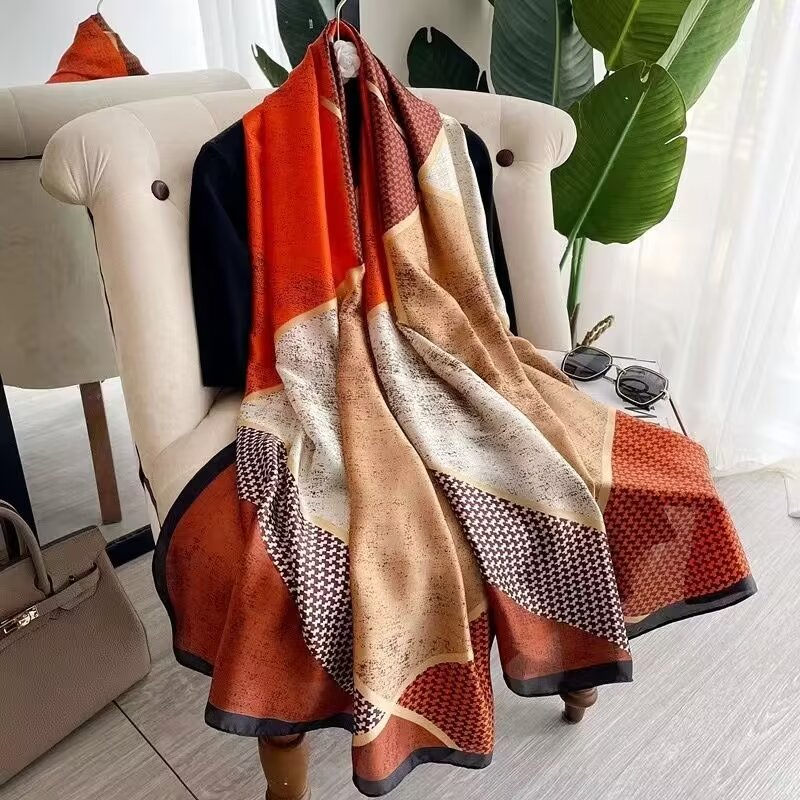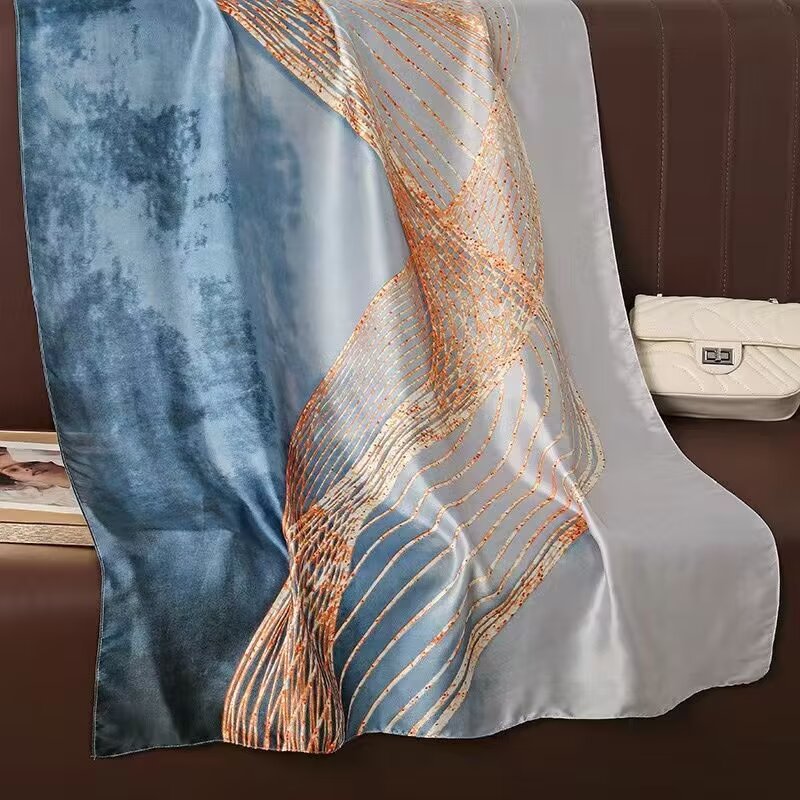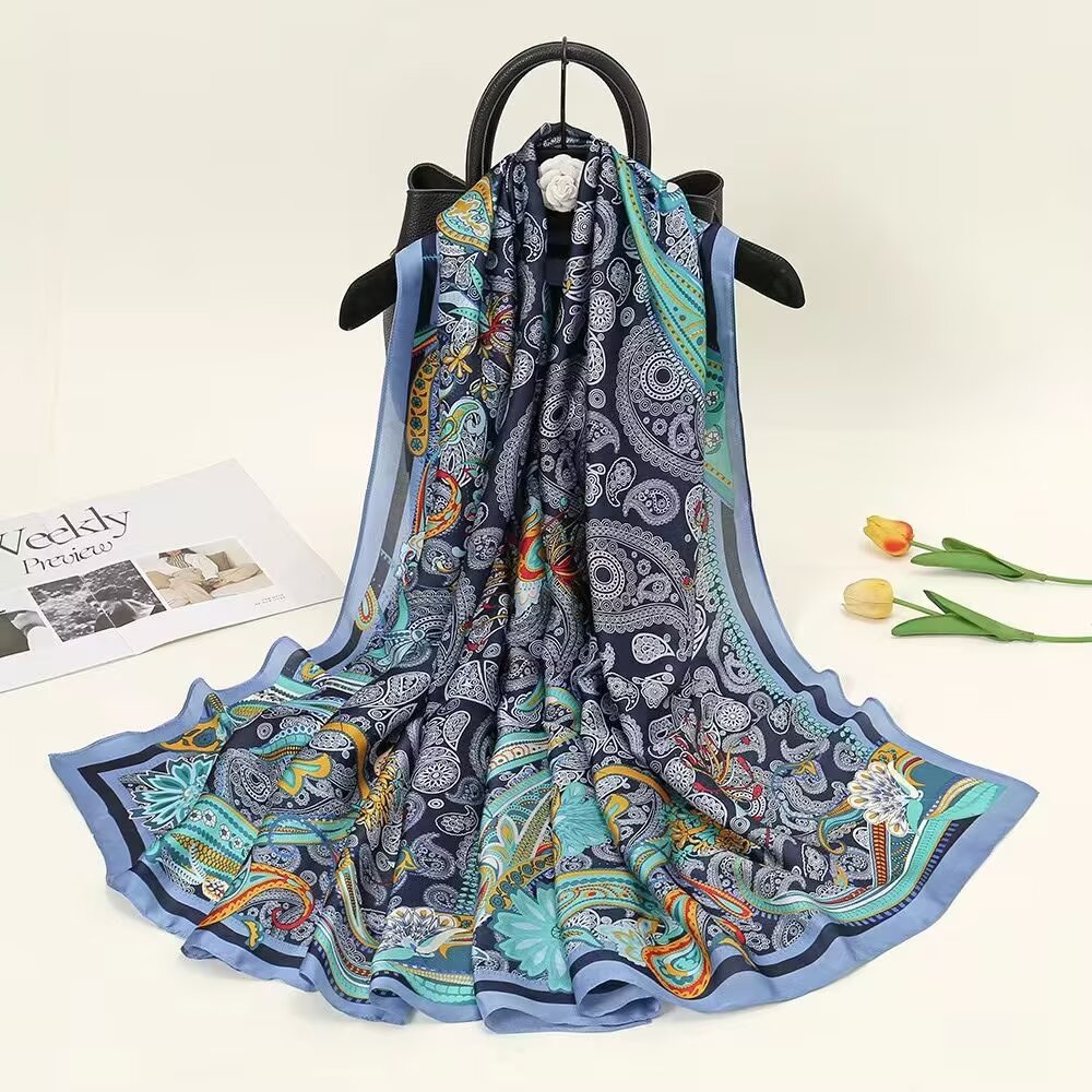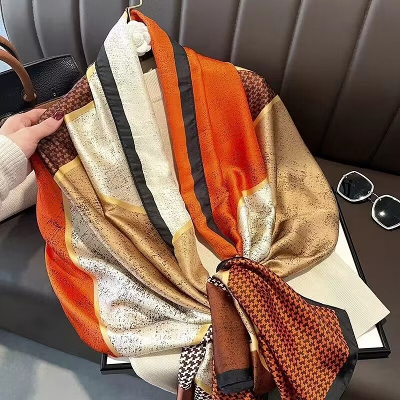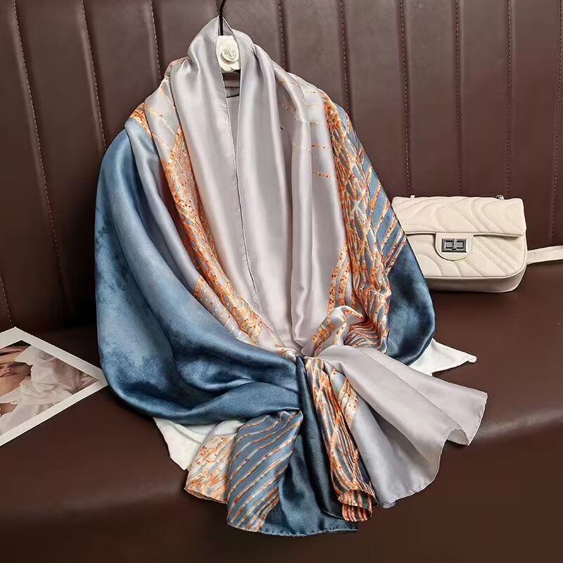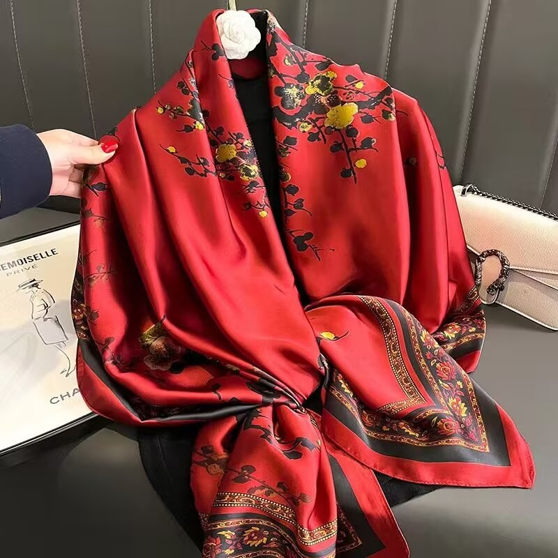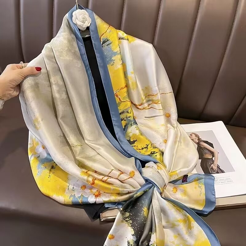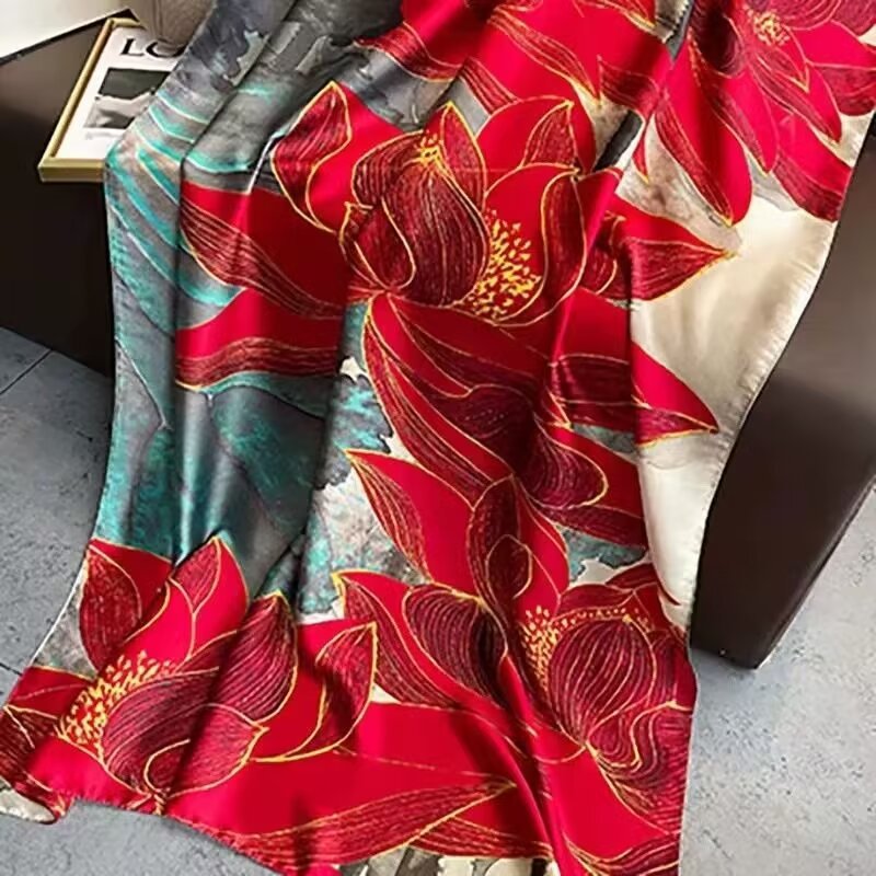 새로운 리 브로케이드 새틴 기하학적 인쇄 90*180 실크 스카프 봄과 여름 태양 보호 우아한 기질 큰 목도리 숙녀 올 매치스토어 가기