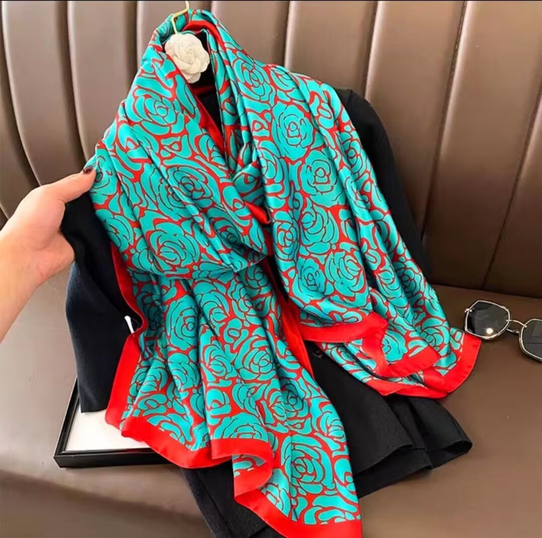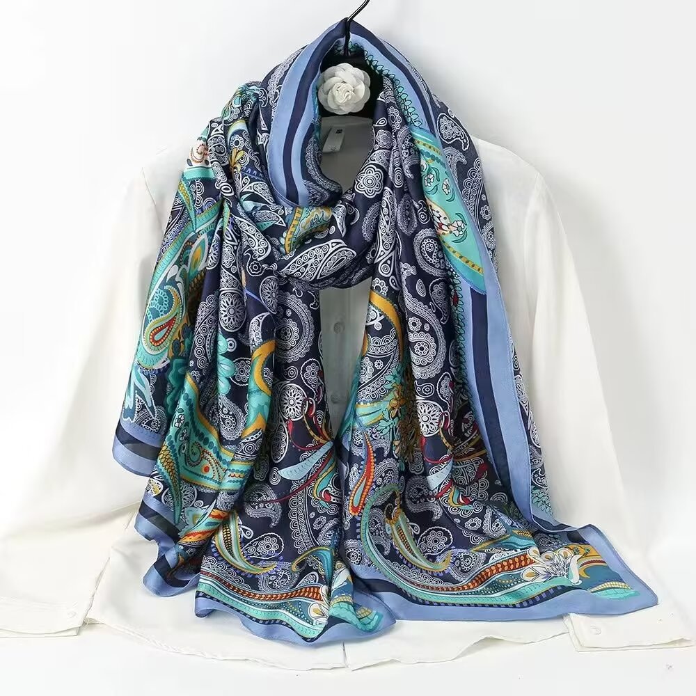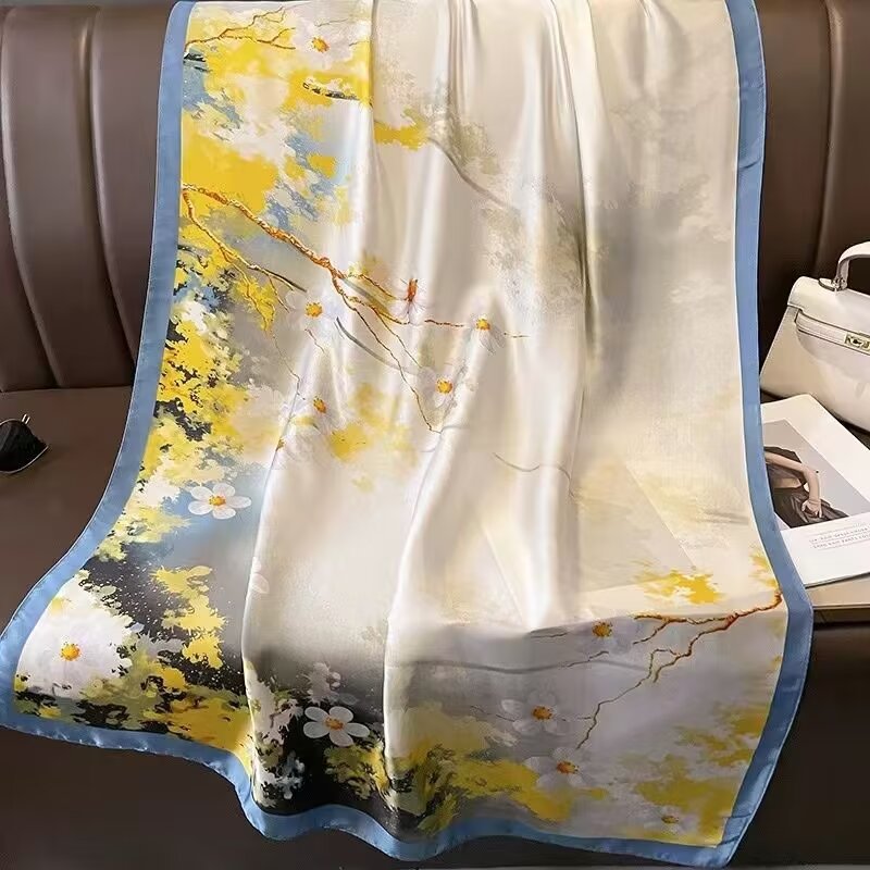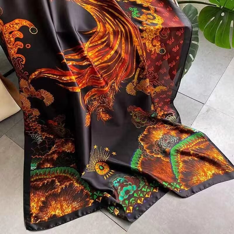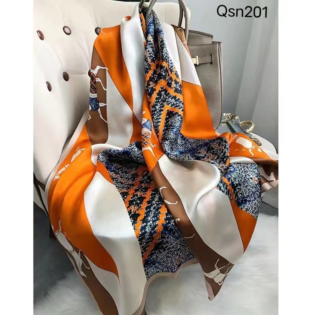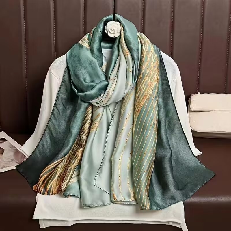 새로운 리 브로케이드 새틴 기하학적 인쇄 90*180 실크 스카프 봄과 여름 태양 보호 우아한 기질 큰 목도리 숙녀 올 매치스토어 가기
