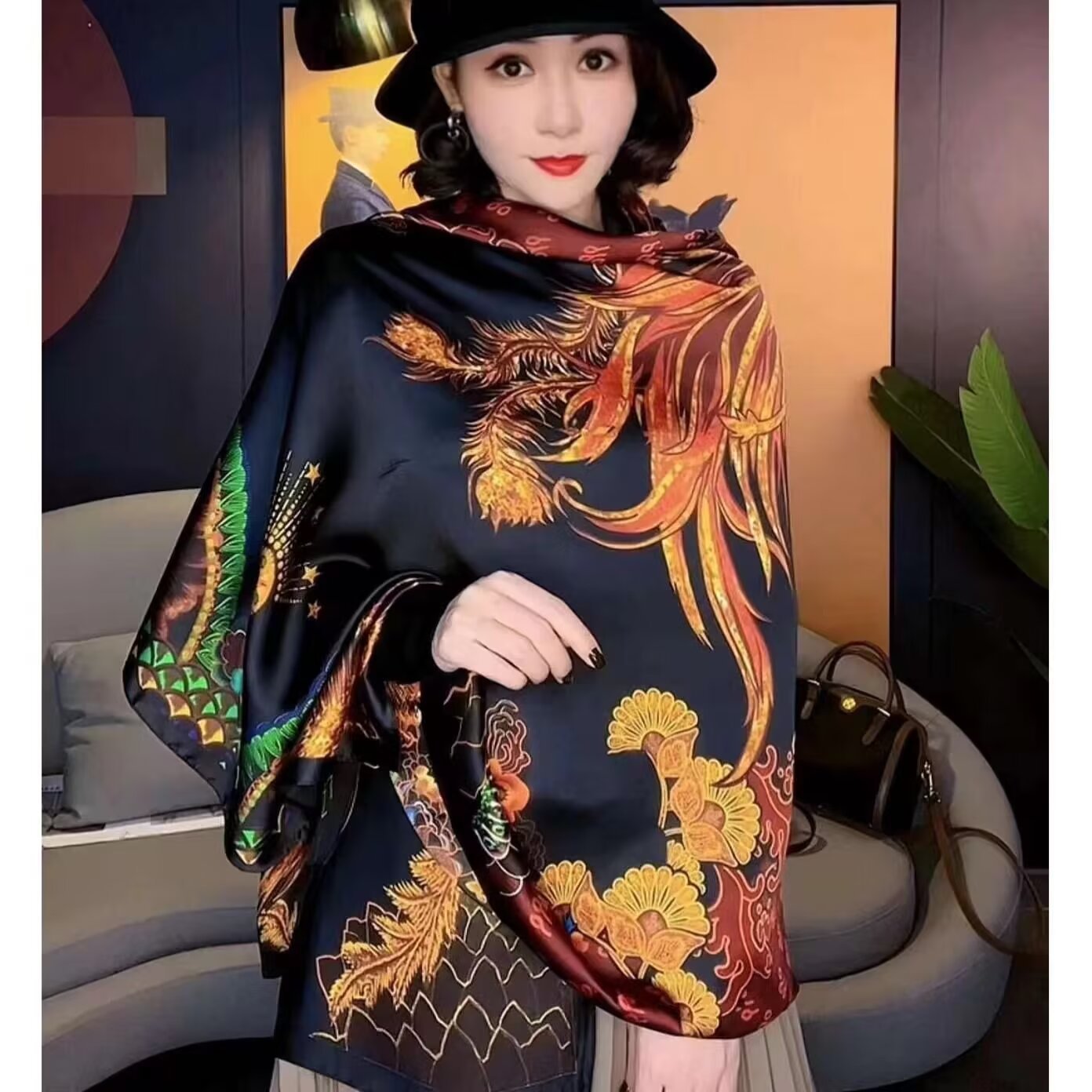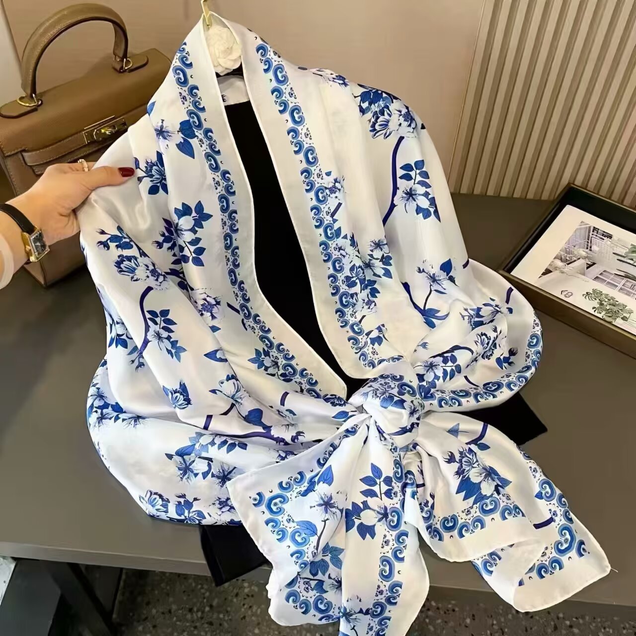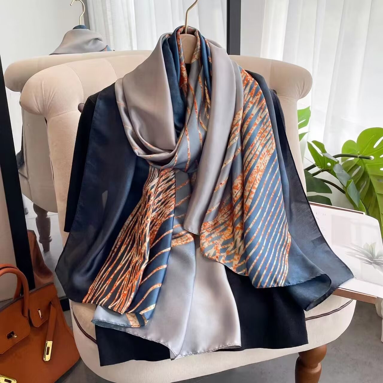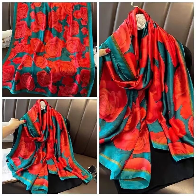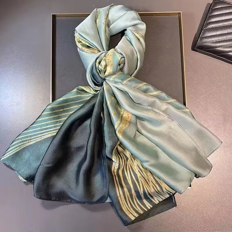 새로운 리 브로케이드 새틴 기하학적 인쇄 90*180 실크 스카프 봄과 여름 태양 보호 우아한 기질 큰 목도리 숙녀 올 매치스토어 가기