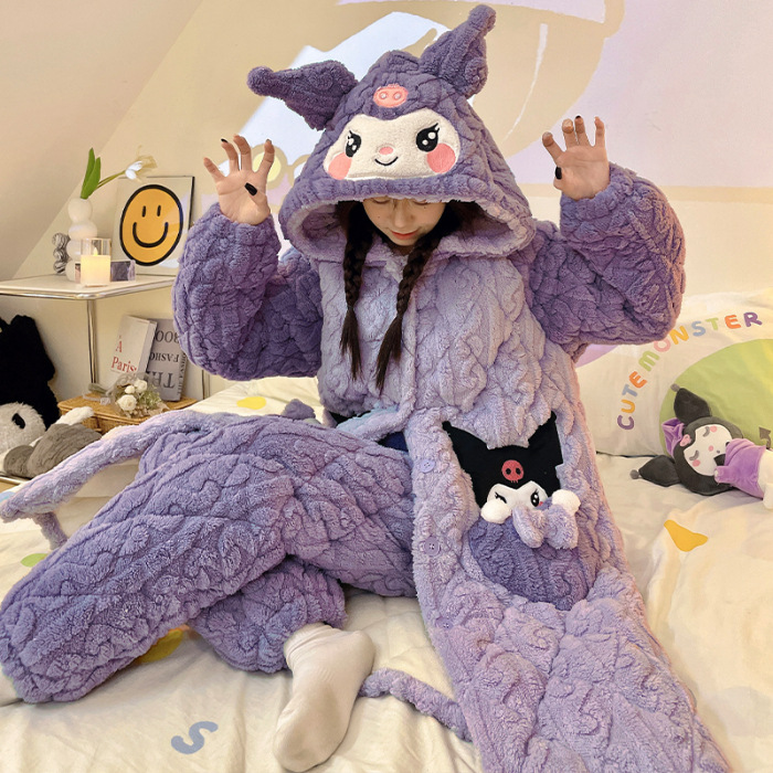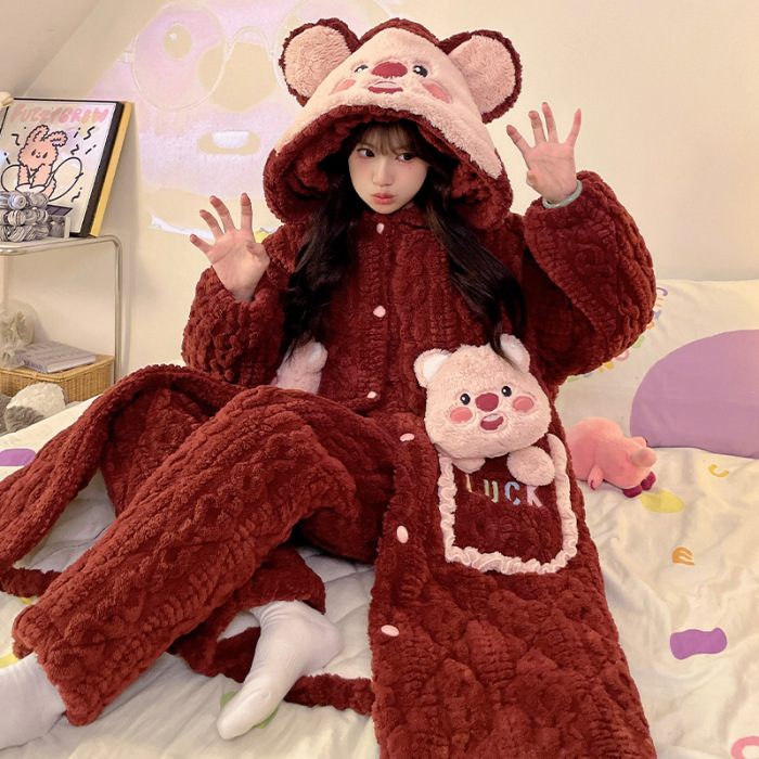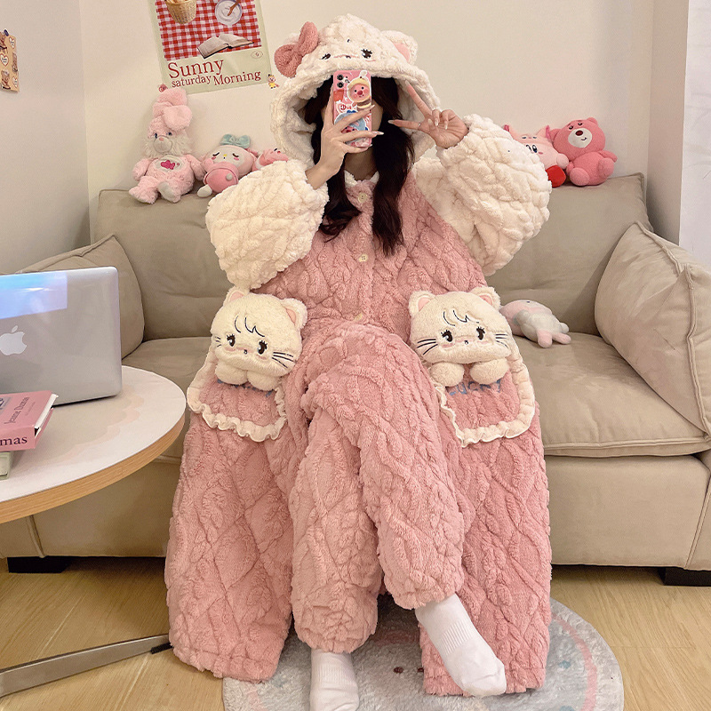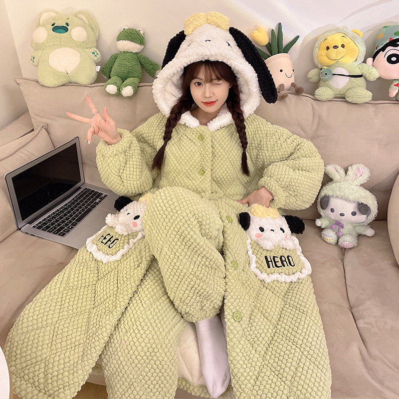 잠옷 3 층 면화 세트 겨울 기모 두꺼운 소녀 중학교 잠옷 긴 잠옷 만화 따뜻한 집스토어 가기