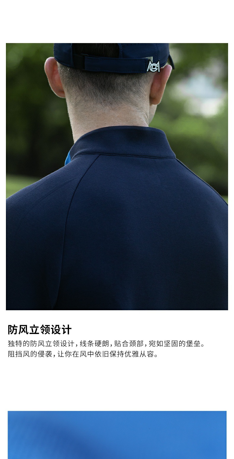 • YF731-컬러풀 블루 네이비 탑 [따뜻한 스탠드 칼라/피케 패턴/소맷단 조임]