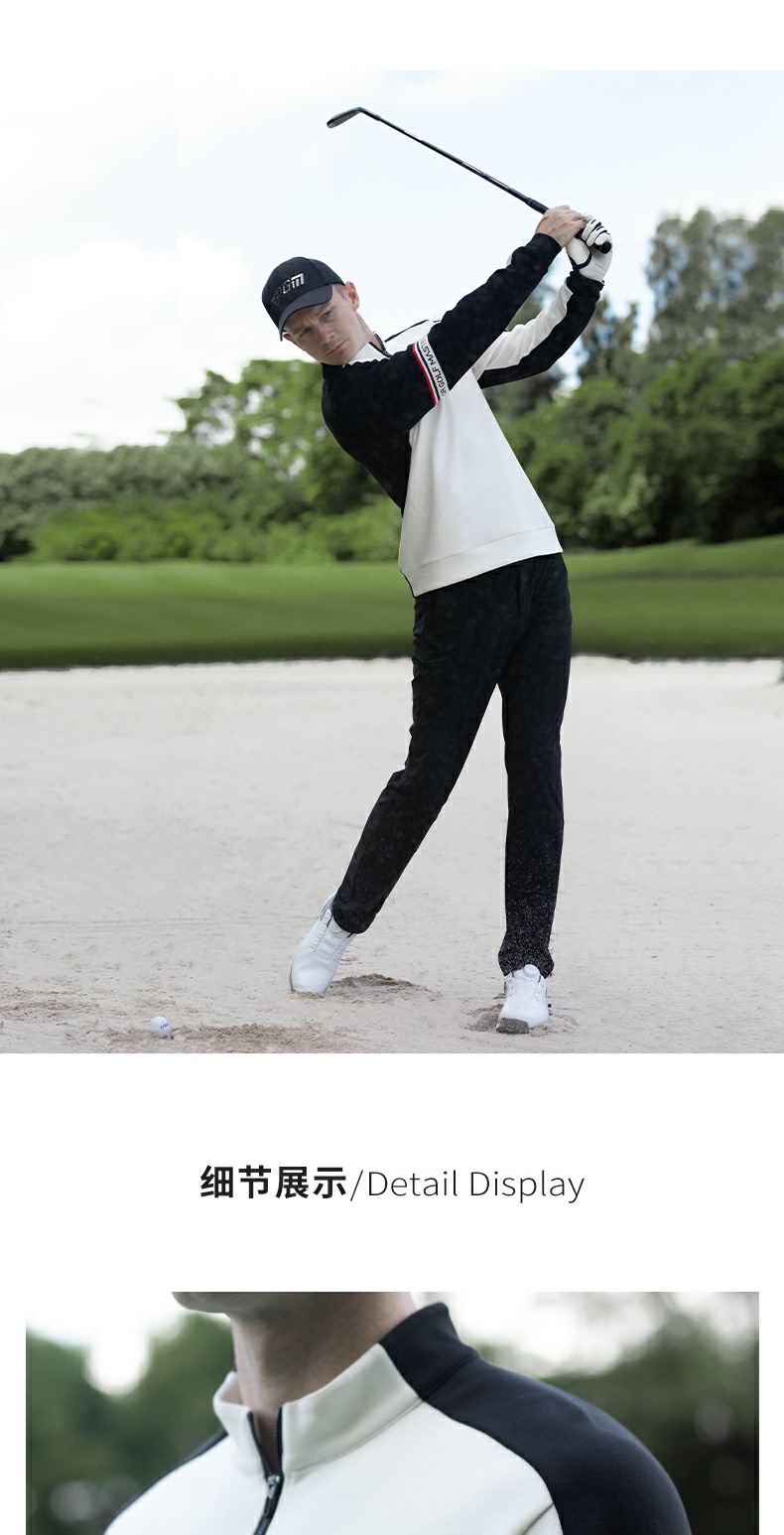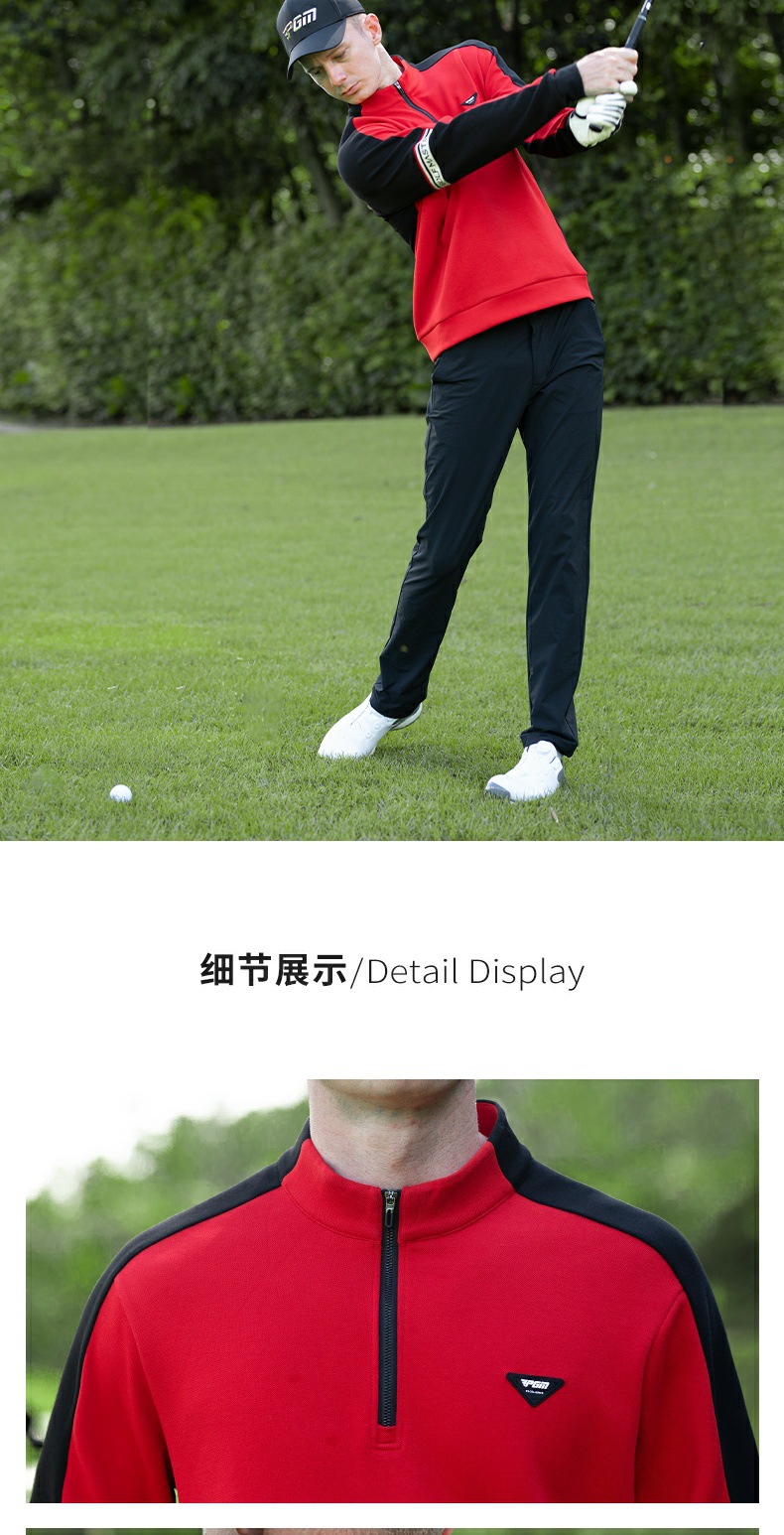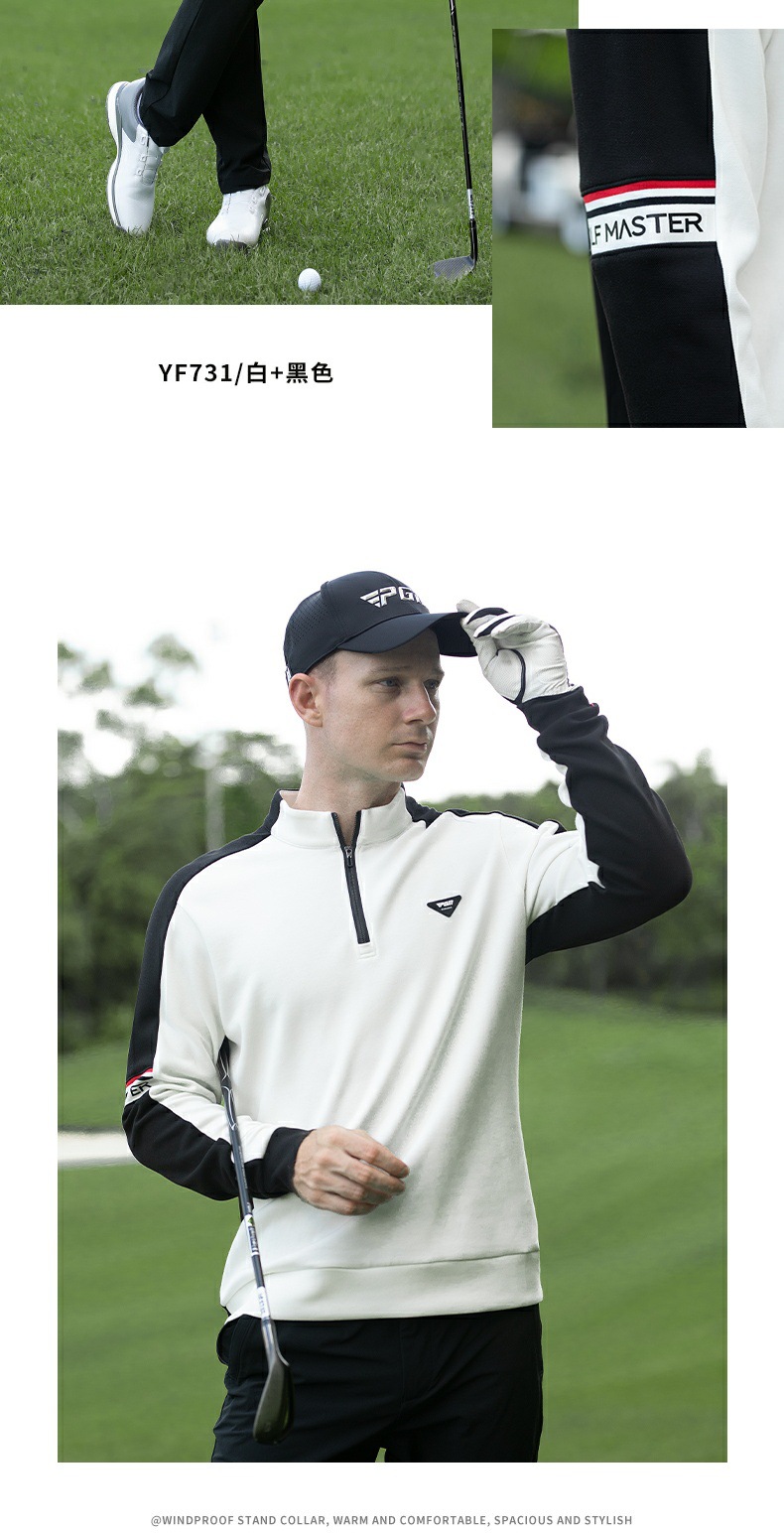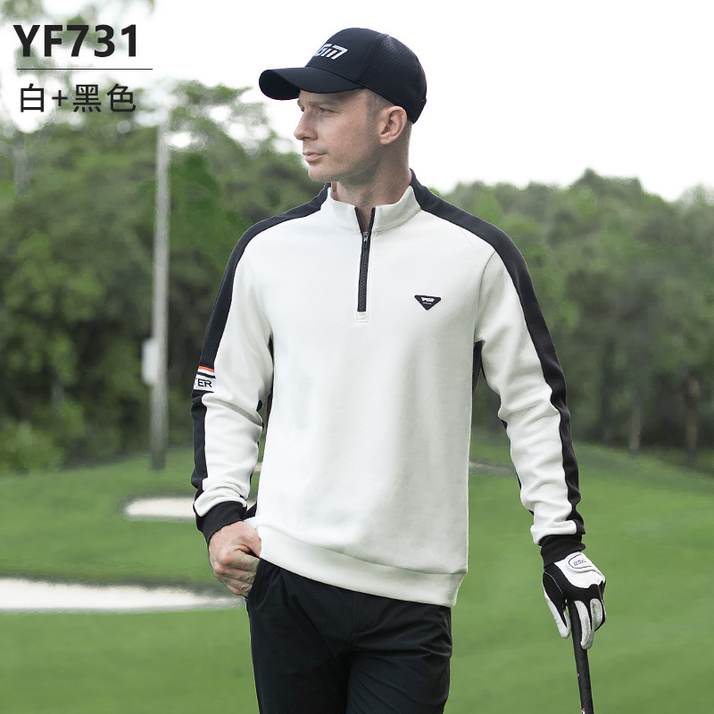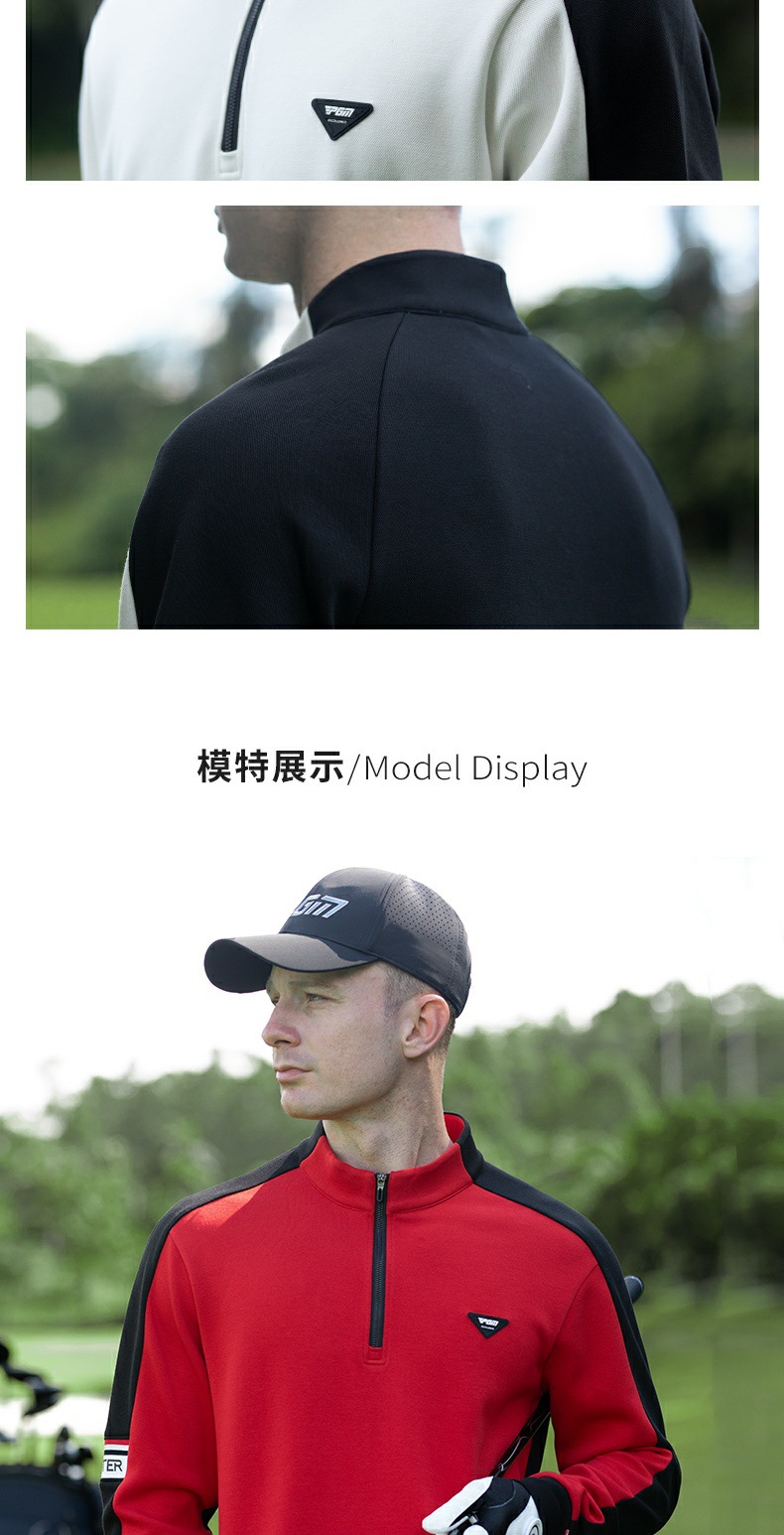 PGM 골프 의류 남성용 긴팔 티셔츠 따뜻한 스포츠 탑 지퍼 칼라 비드 패턴 옷스토어 가기