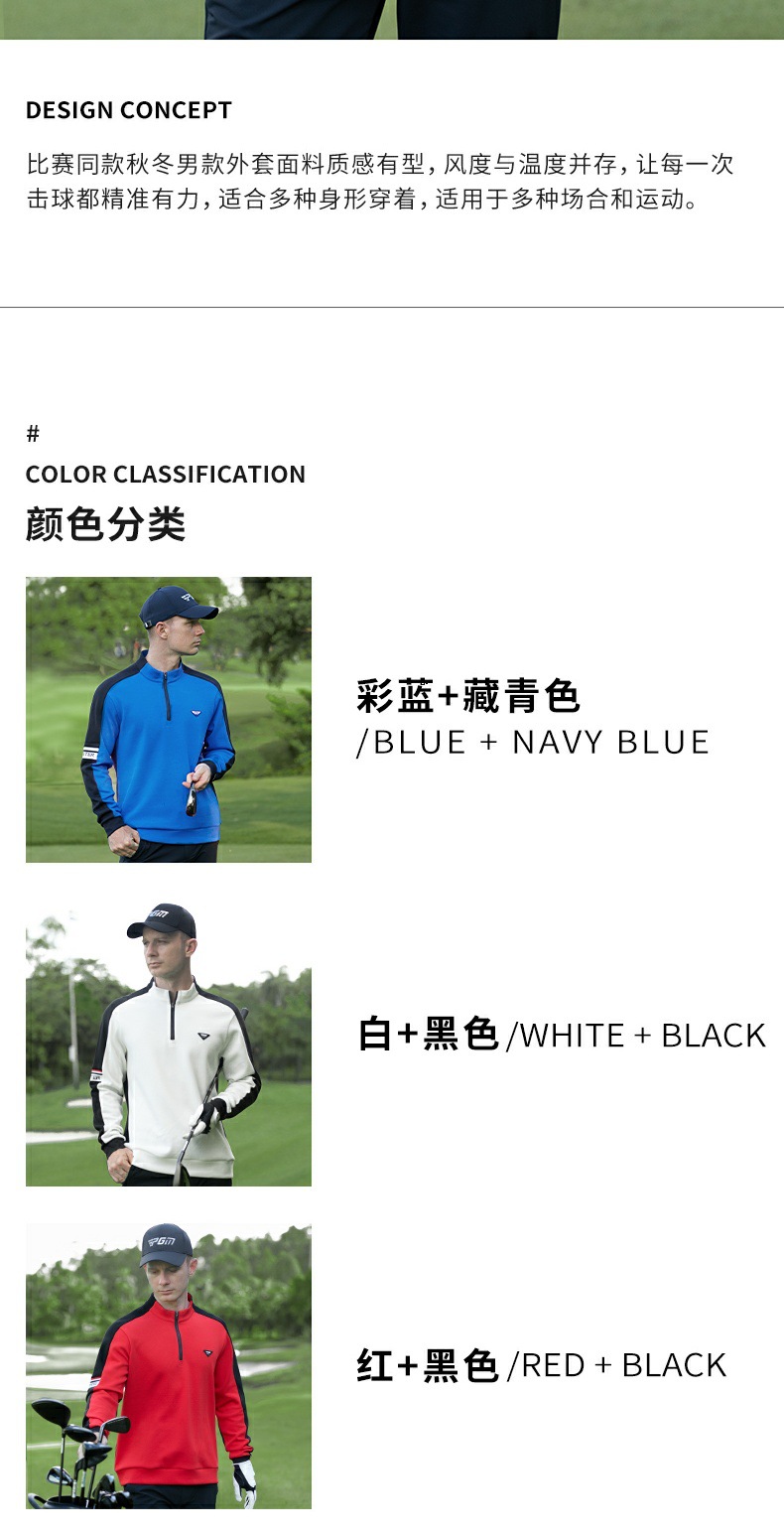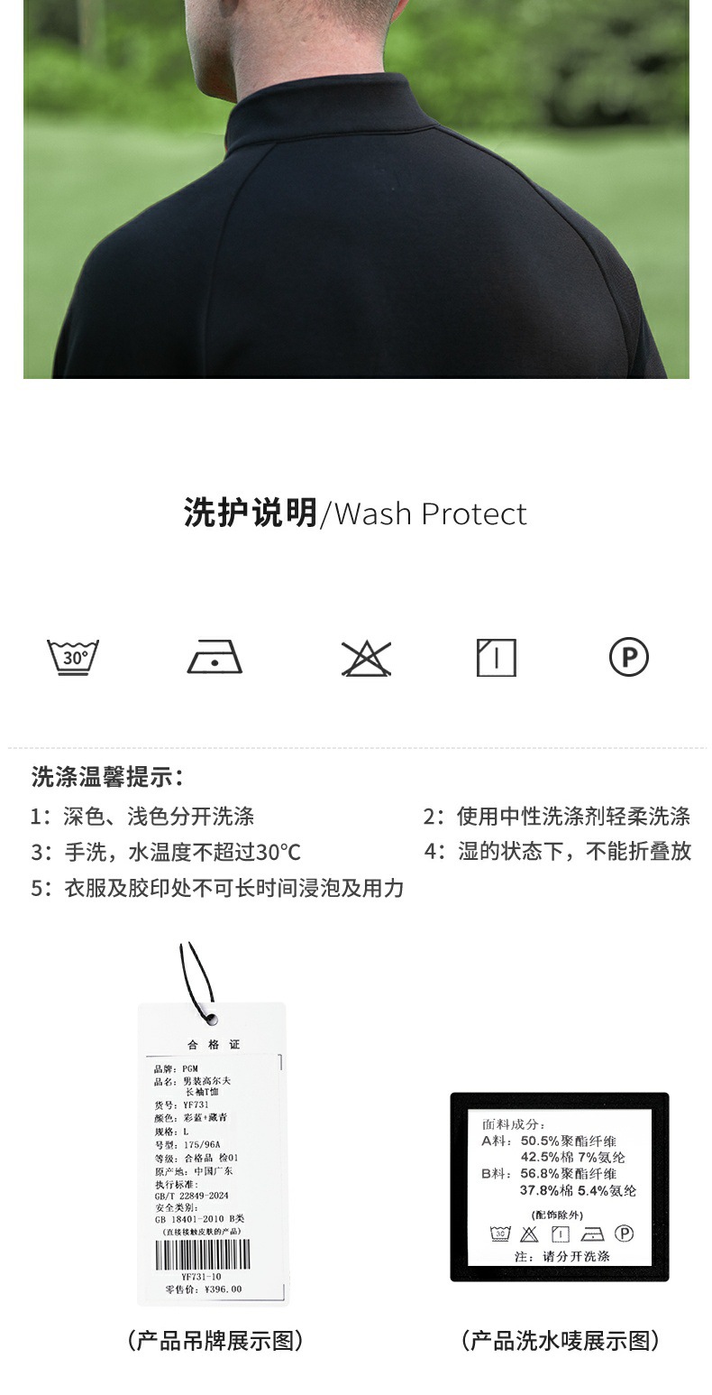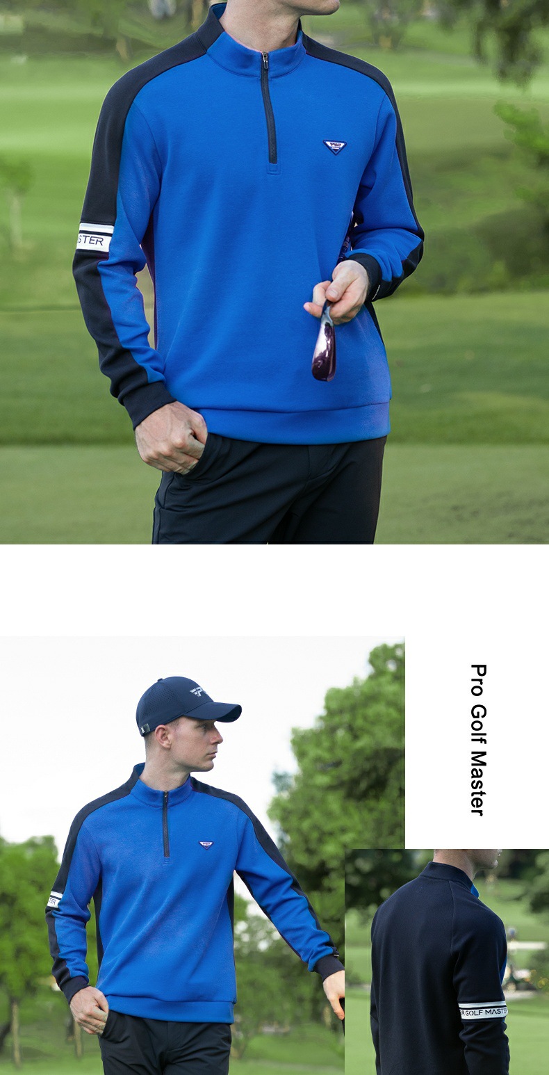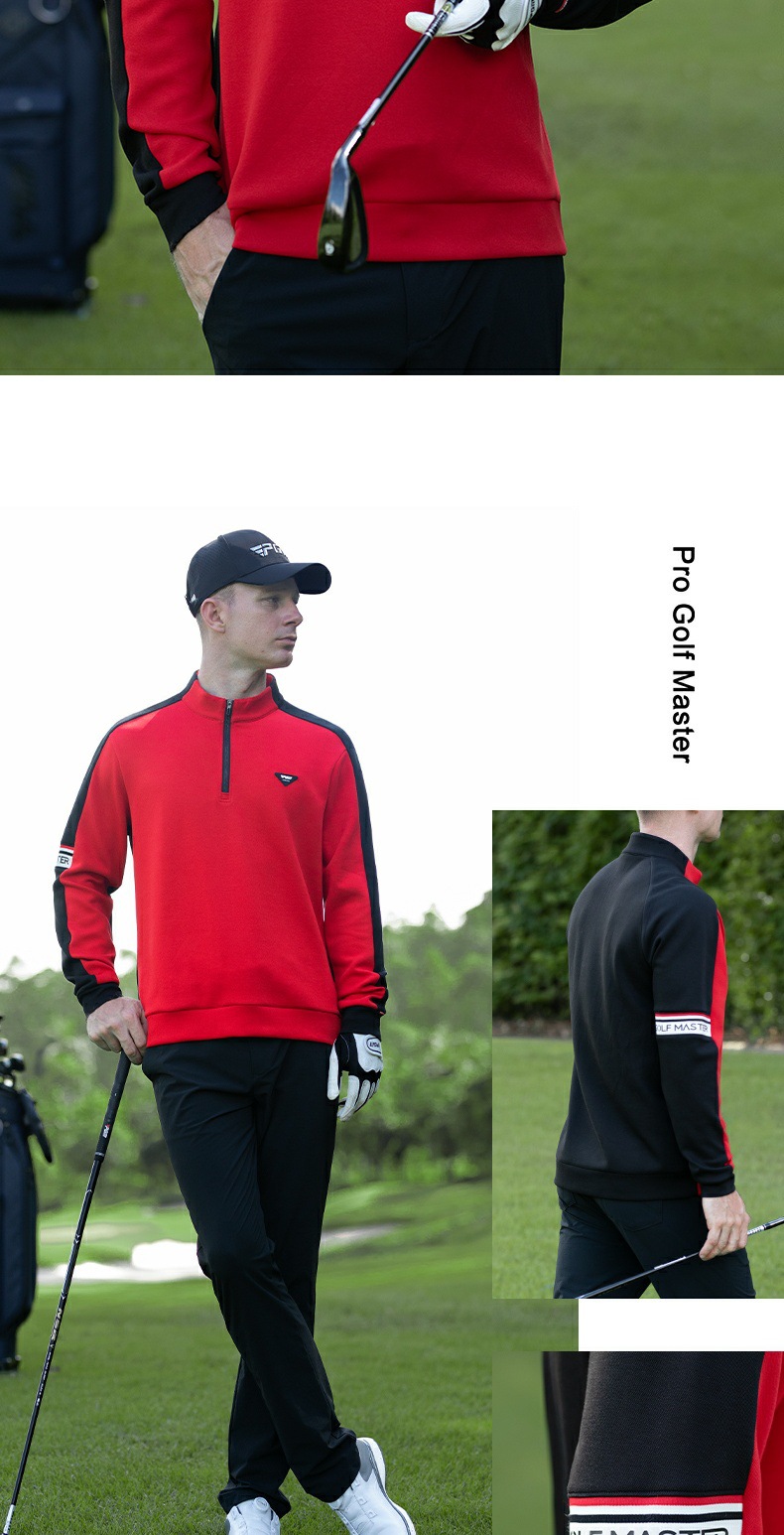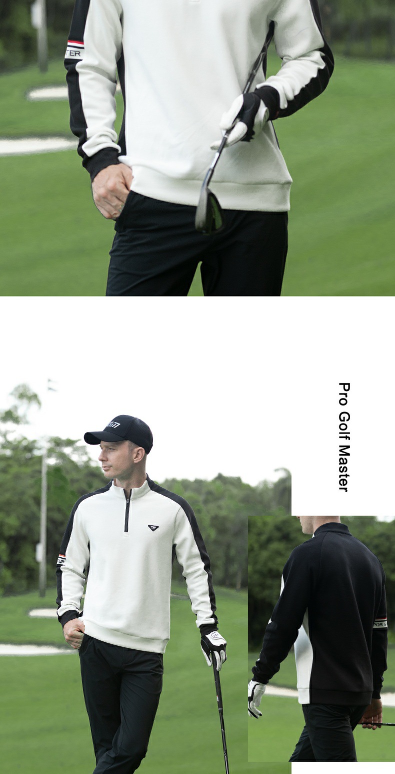 PGM 골프 의류 남성용 긴팔 티셔츠 따뜻한 스포츠 탑 지퍼 칼라 비드 패턴 옷스토어 가기