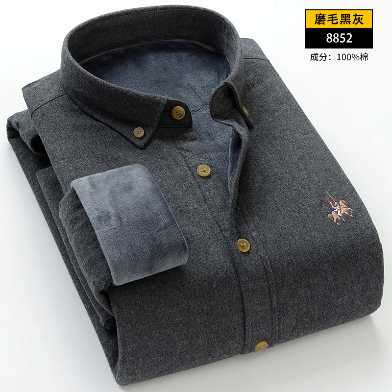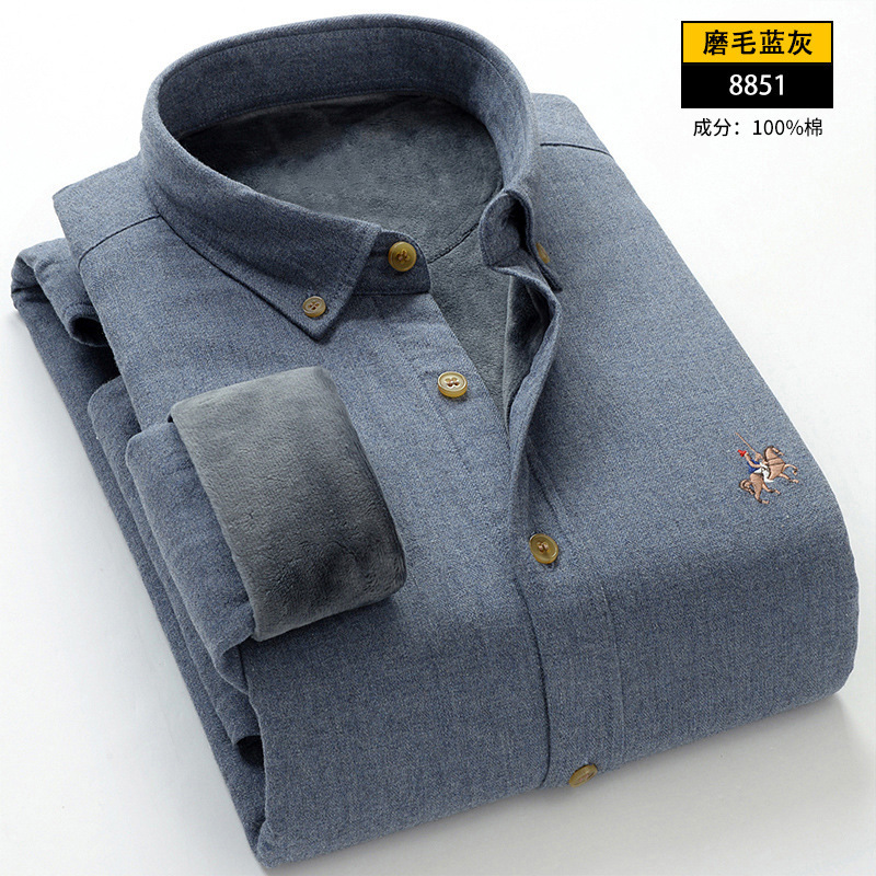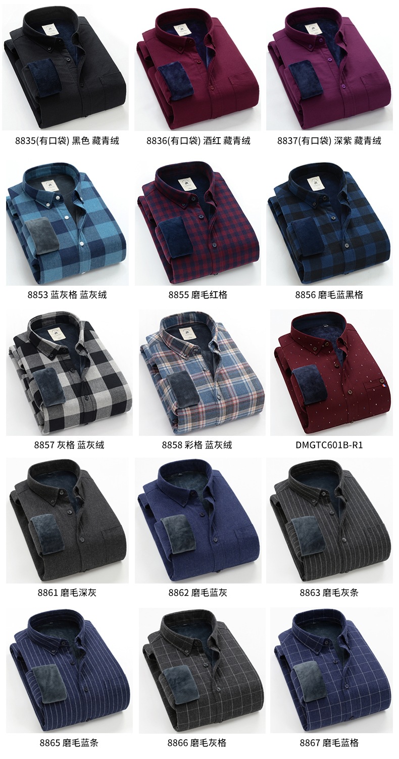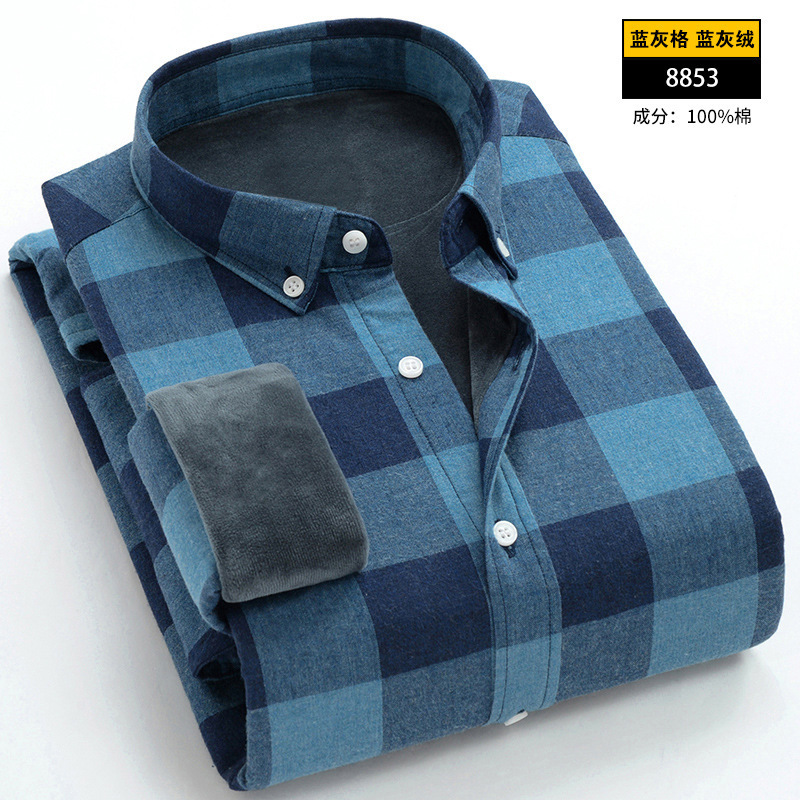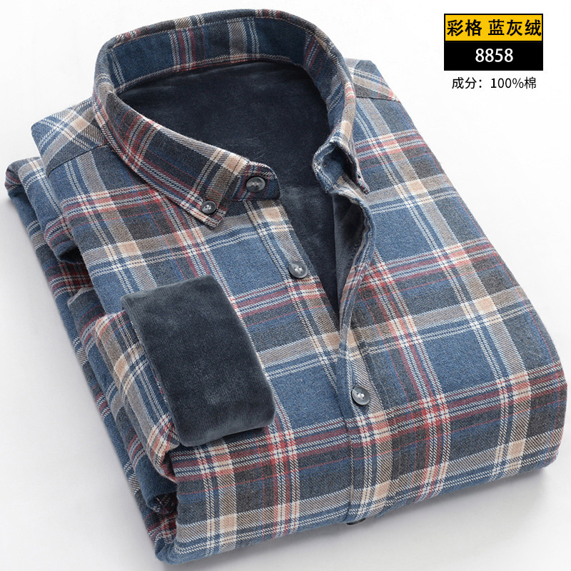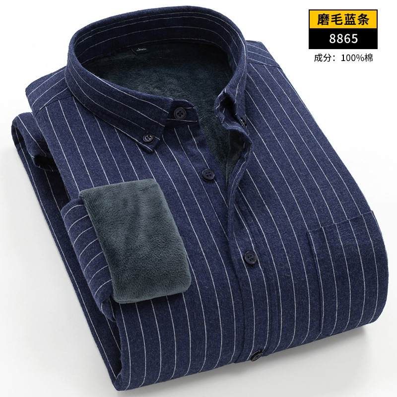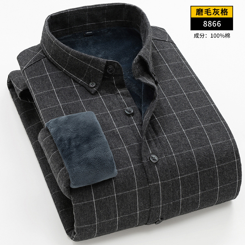 가을과 겨울 따뜻한 셔츠 남자 기모 두껍게 긴 소매 중년 샌딩 체크 무늬 셔츠 남자의 중년 헤어 세대스토어 가기