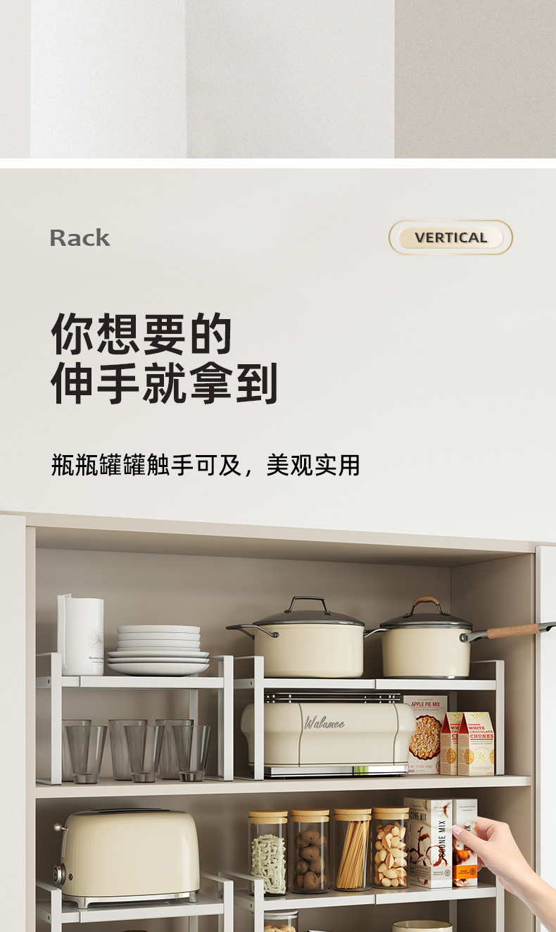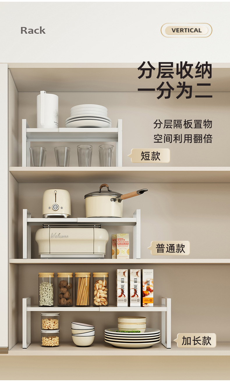 주방 보관 랙 캐비닛 레이어드 랙 캐비닛 개폐식 파티션 식기 및 냄비 다기능 용 다층 보관 선반