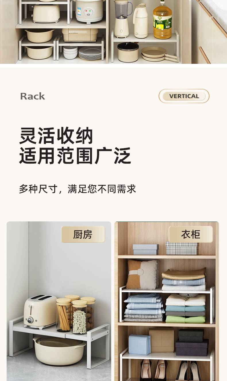 주방 보관 랙 캐비닛 레이어드 랙 캐비닛 개폐식 파티션 식기 및 냄비 다기능 용 다층 보관 선반스토어 가기