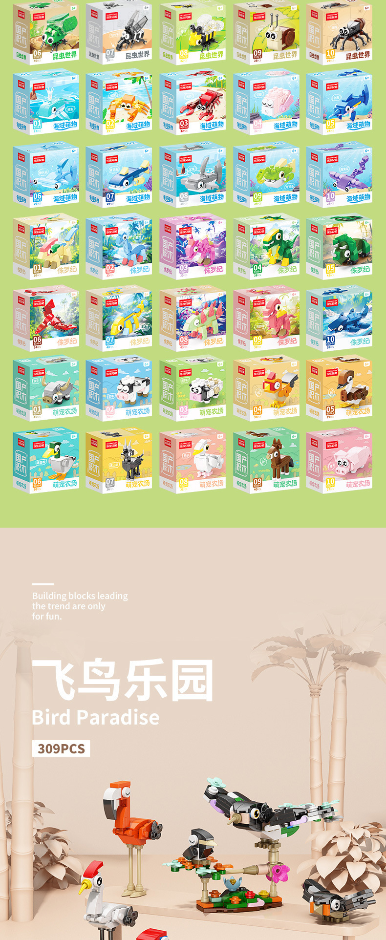 【产品名称】:飞鸟乐园/昆虫世界/海域萌物/侏罗纪/萌宠农场/圣诞派对