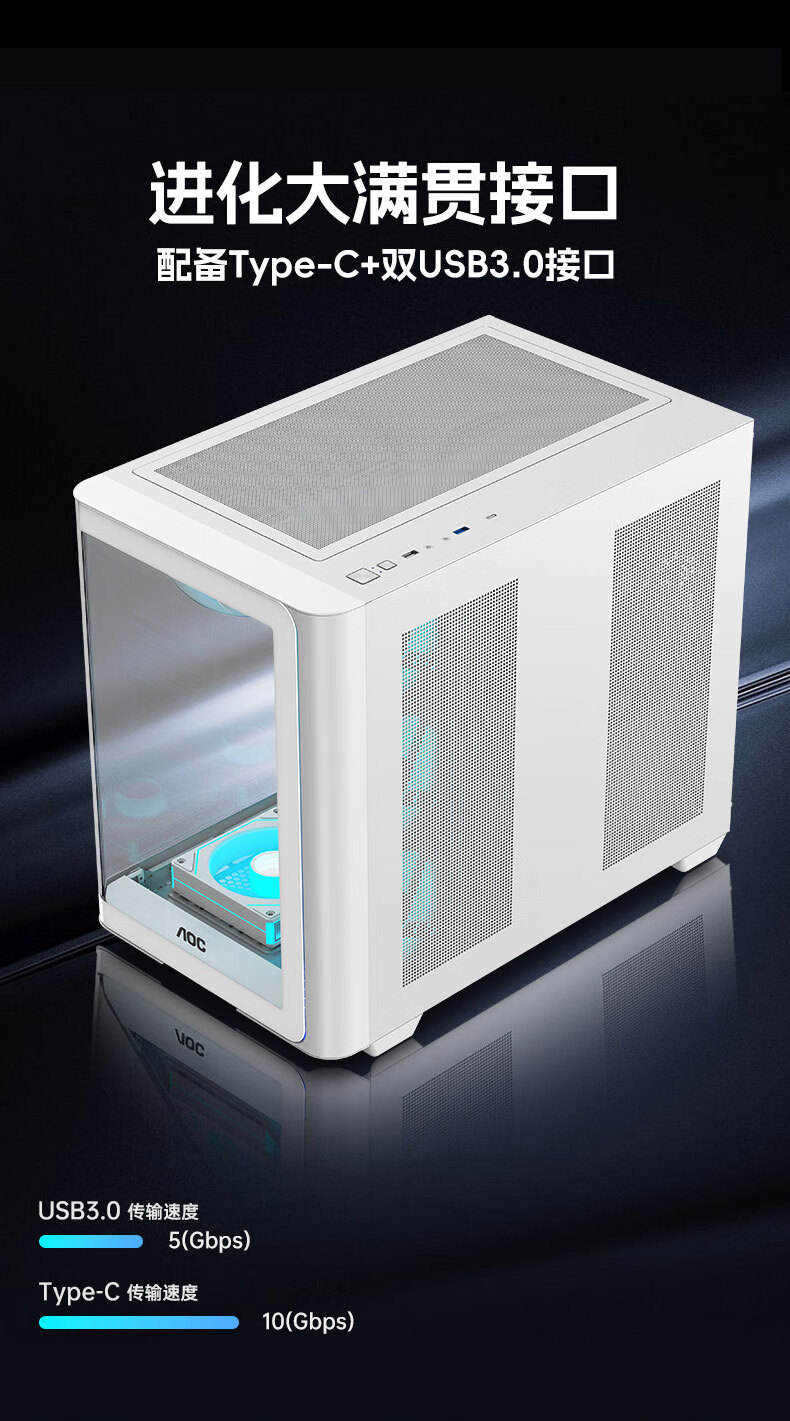 AOC 스카이 쉐이킹 활 CG455 데스크탑 컴퓨터 바다 전망 방 섀시 통합 곡선 유리 측면 360 수냉식 ATX