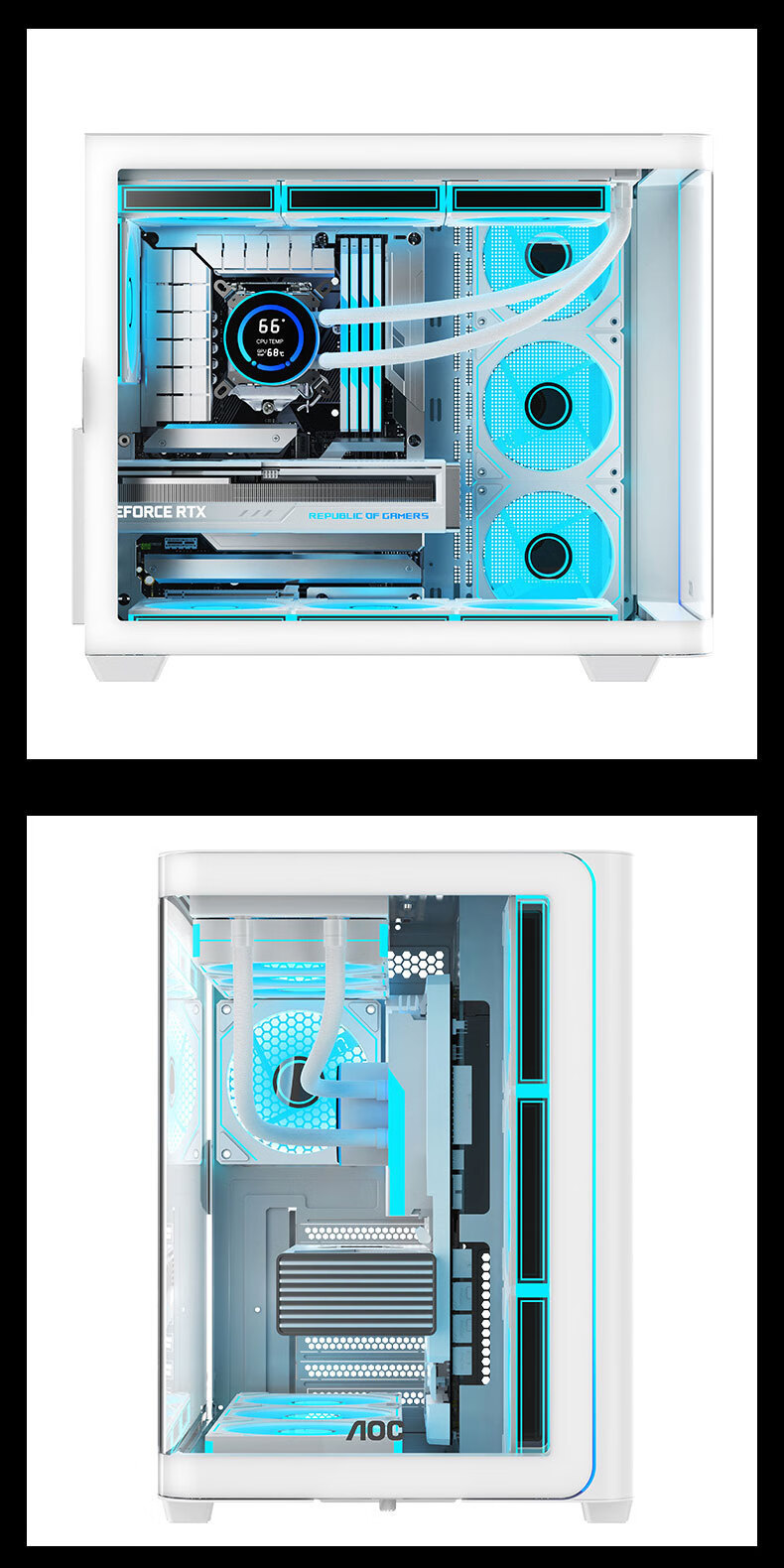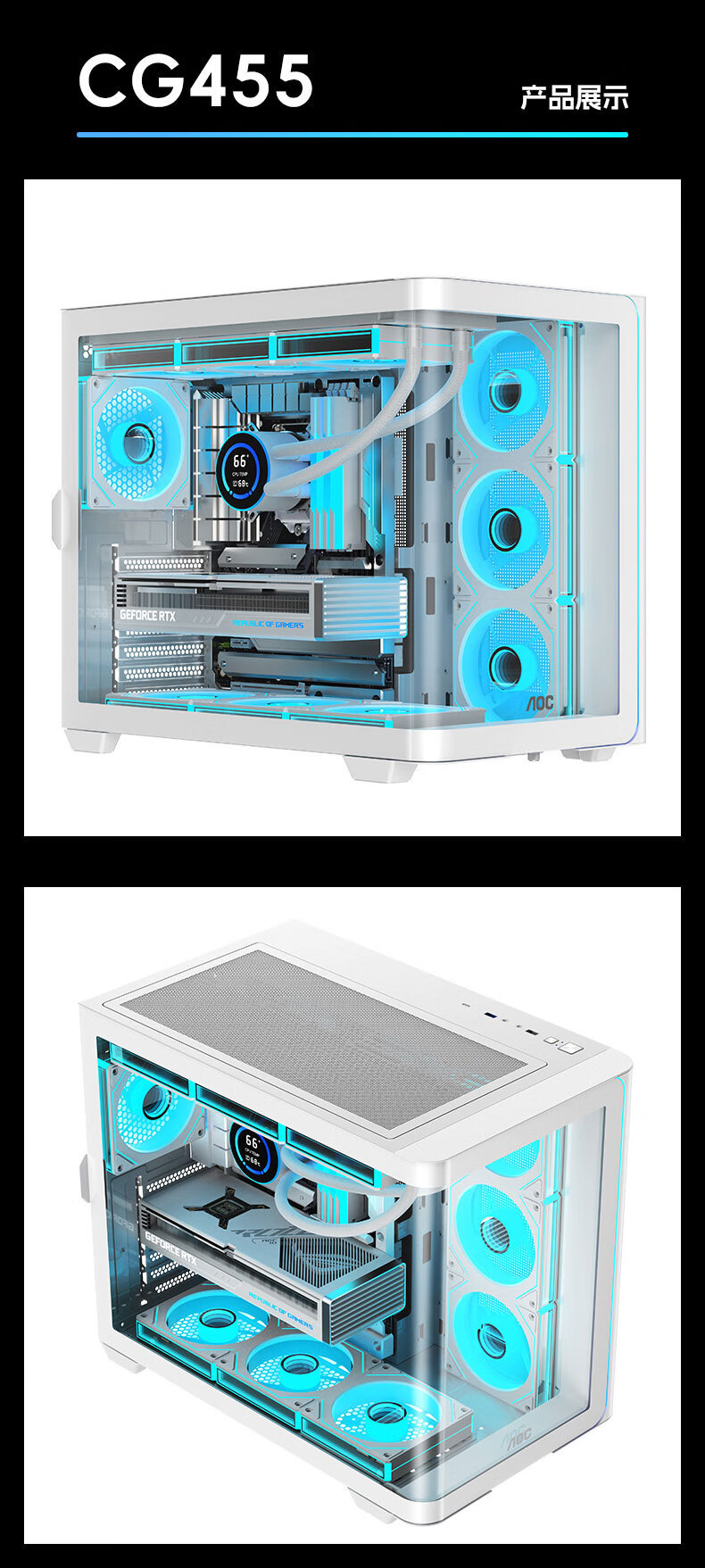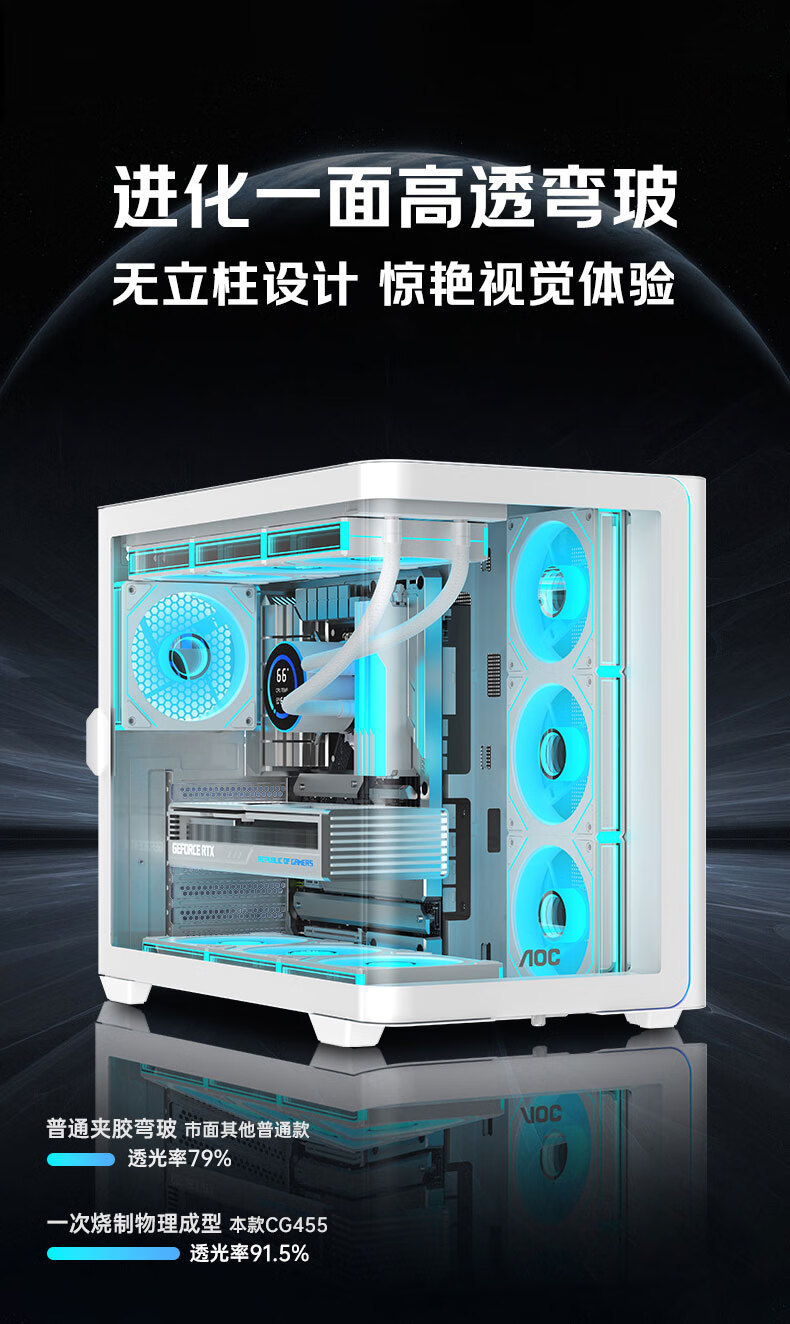 AOC 스카이 쉐이킹 활 CG455 데스크탑 컴퓨터 바다 전망 방 섀시 통합 곡선 유리 측면 360 수냉식 ATX스토어 가기