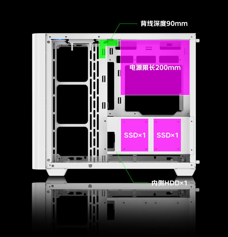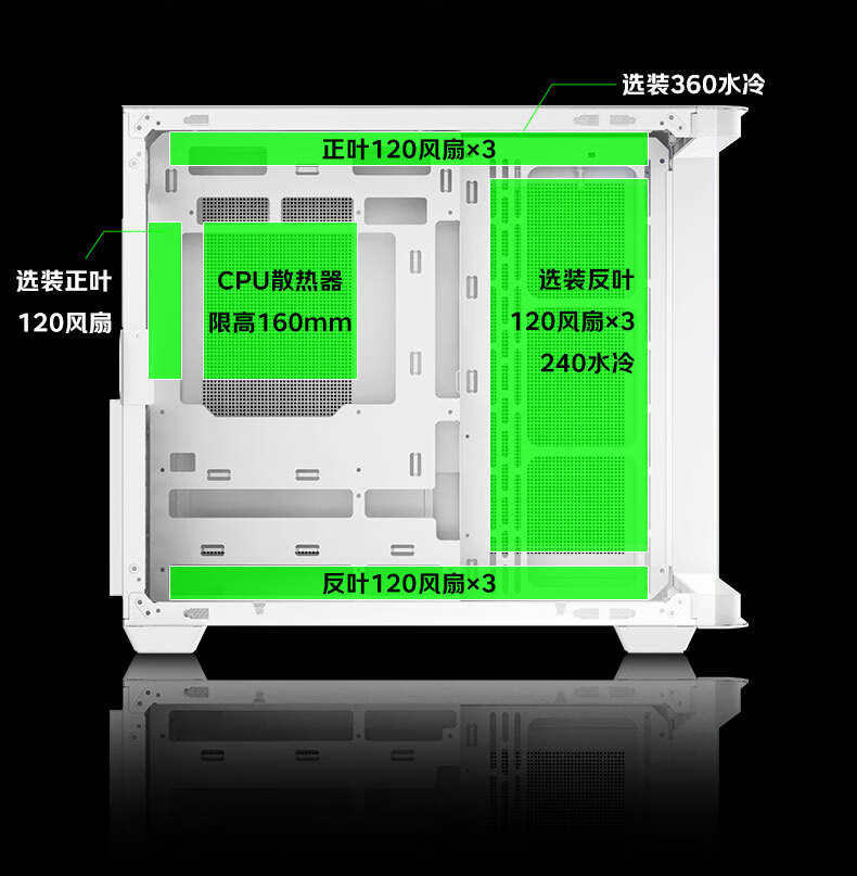 • CG455 흰색 [통합 곡선 유리] 팬 전원 공급 장치가 없는 빈 상자