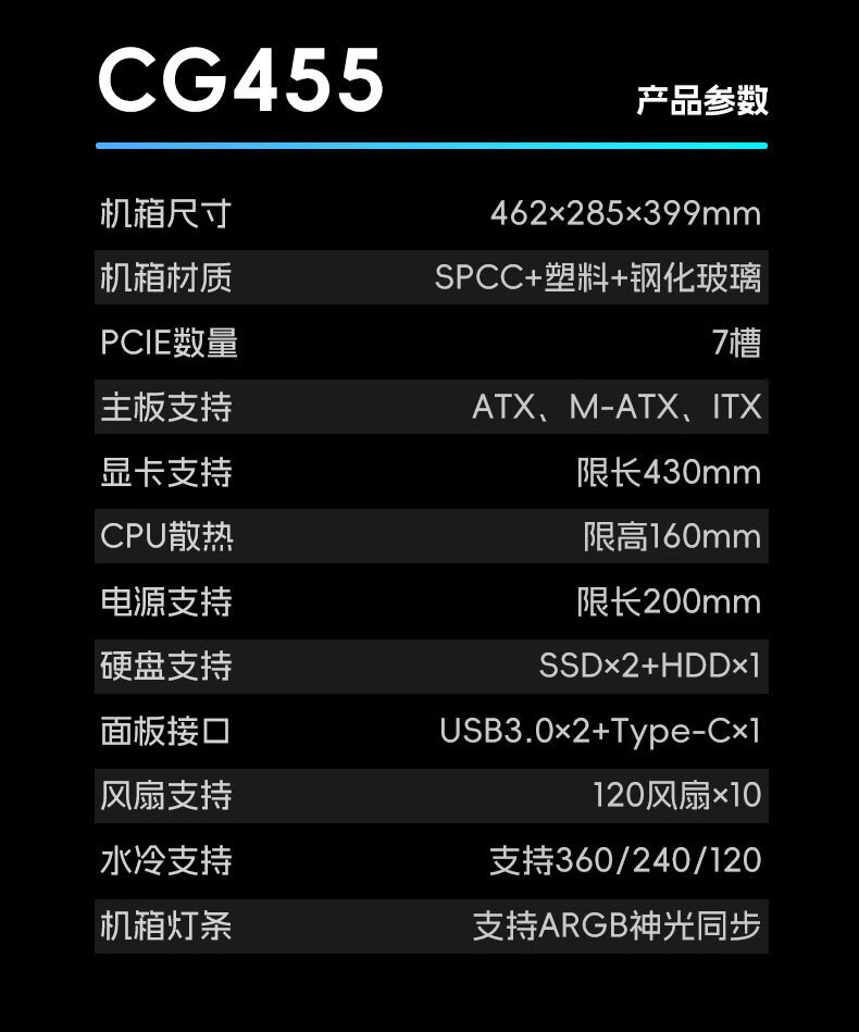 • CG455 검정색 [통합 곡선 유리] 팬 전원 공급 장치가 없는 빈 상자