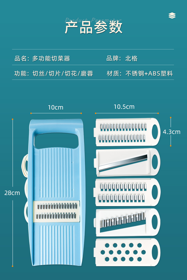 • 5种刀头多功能切菜器✦