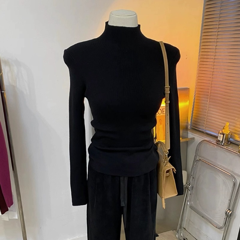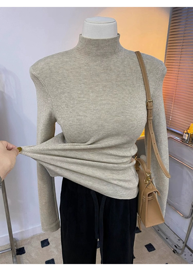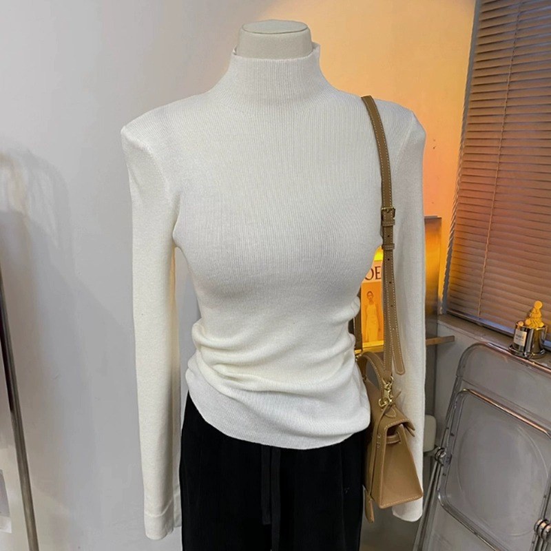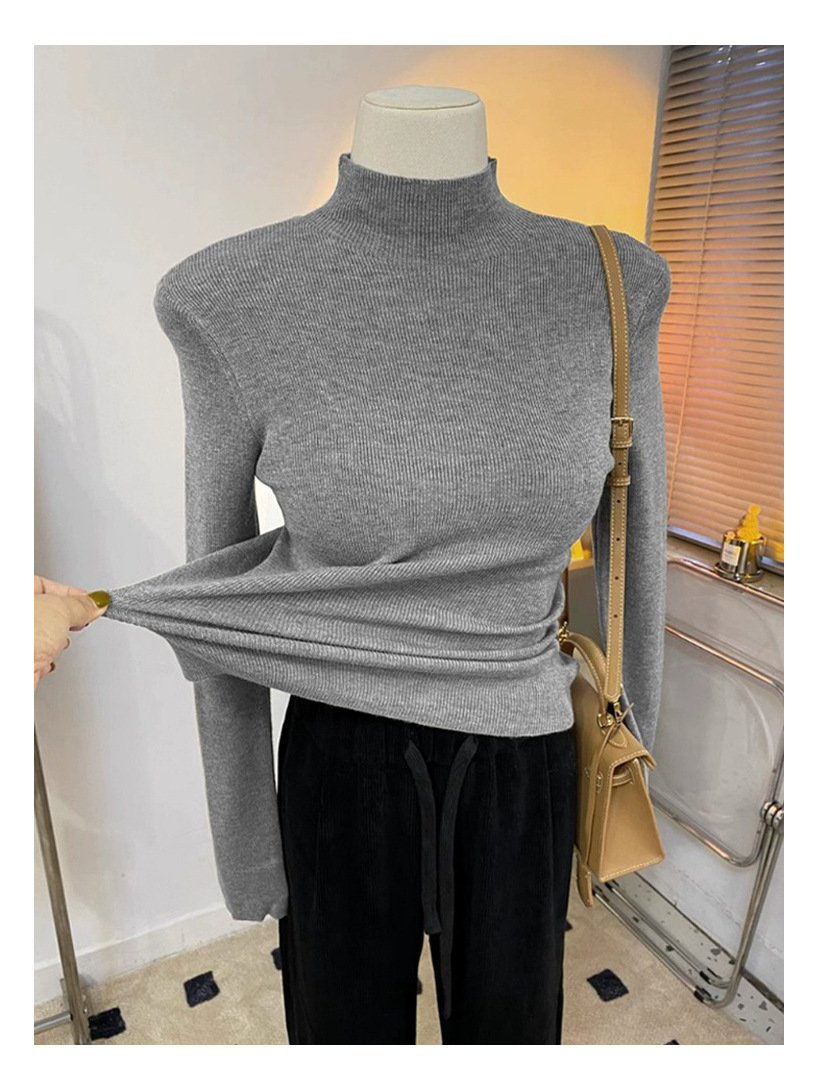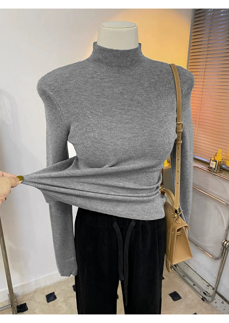 그레이 고급 슬림핏 베이직 니트 여성용 하프넥 탑 2025 봄 솔리드 컬러 이너 니트 스웨터스토어 가기