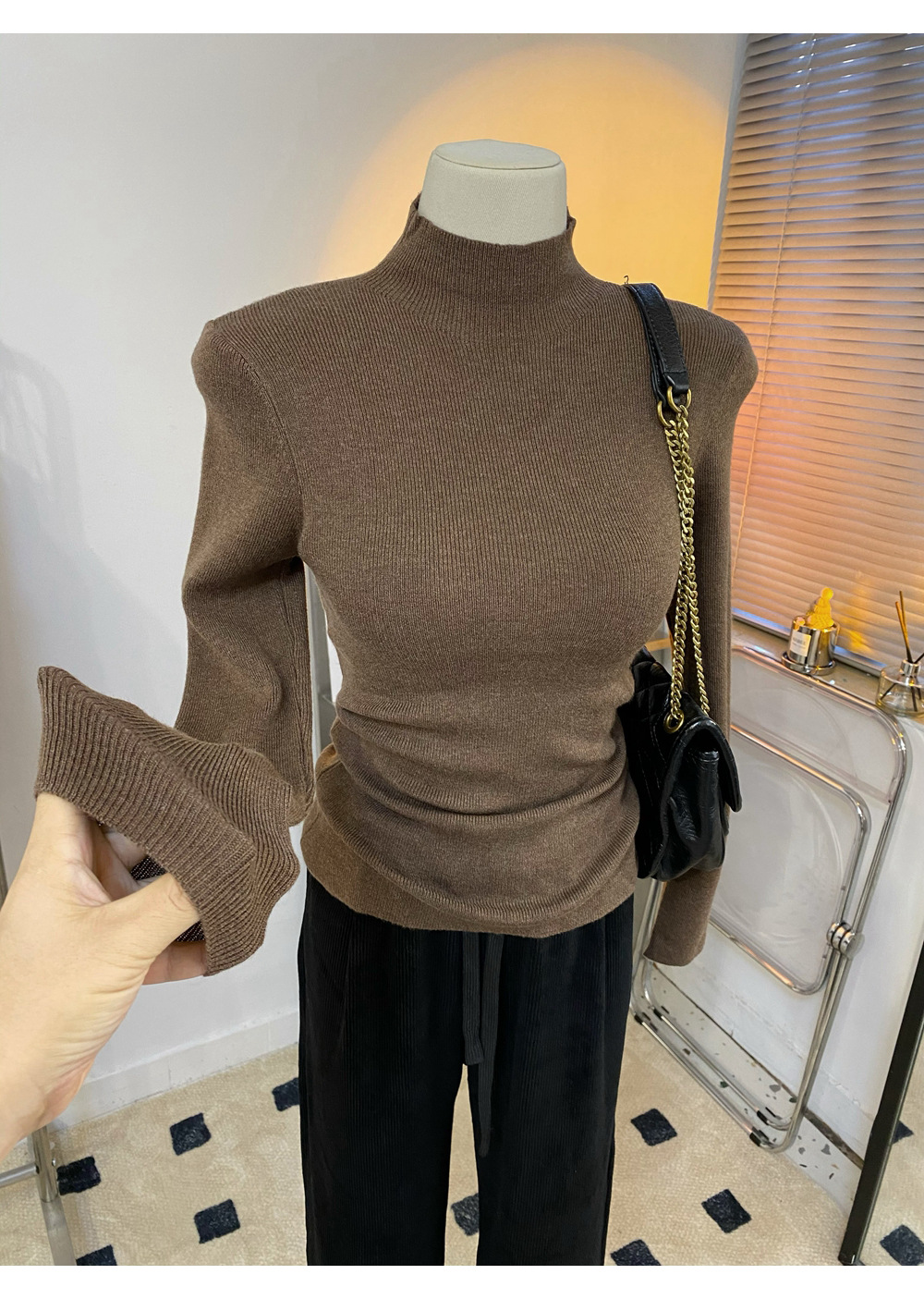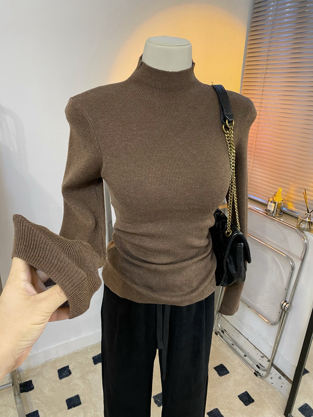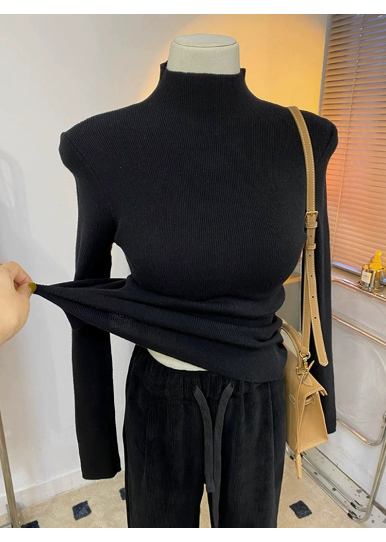그레이 고급 슬림핏 베이직 니트 여성용 하프넥 탑 2025 봄 솔리드 컬러 이너 니트 스웨터스토어 가기