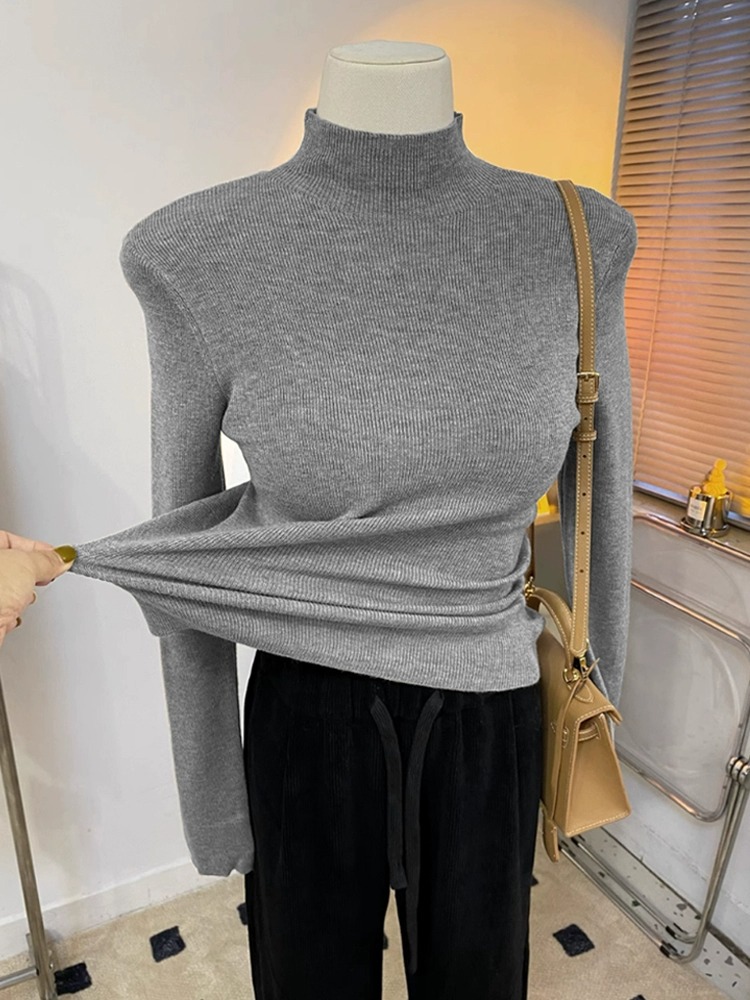 그레이 고급 슬림핏 베이직 니트 여성용 하프넥 탑 2025 봄 솔리드 컬러 이너 니트 스웨터