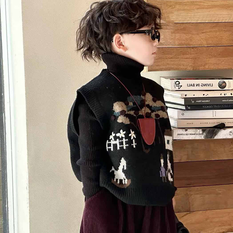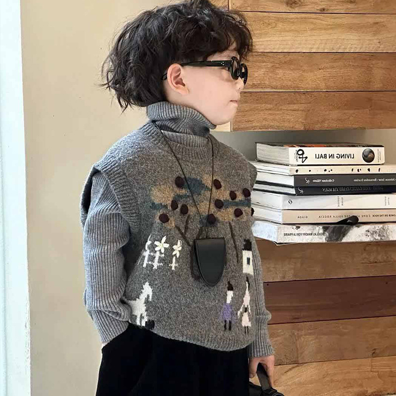 소년 2024 가을과 겨울 아기 모리 레트로 스웨터 조끼 어린이 조끼 투피스 니트 셔츠 탑스토어 가기