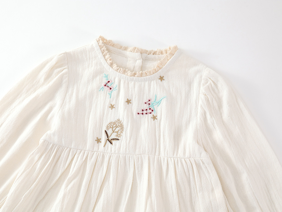 여자 목가적 스타일 작은 신선한 긴팔 드레스 2025 가을 새로운 아기 순수 코튼 수 놓은 공주 드레스 Dropshipping