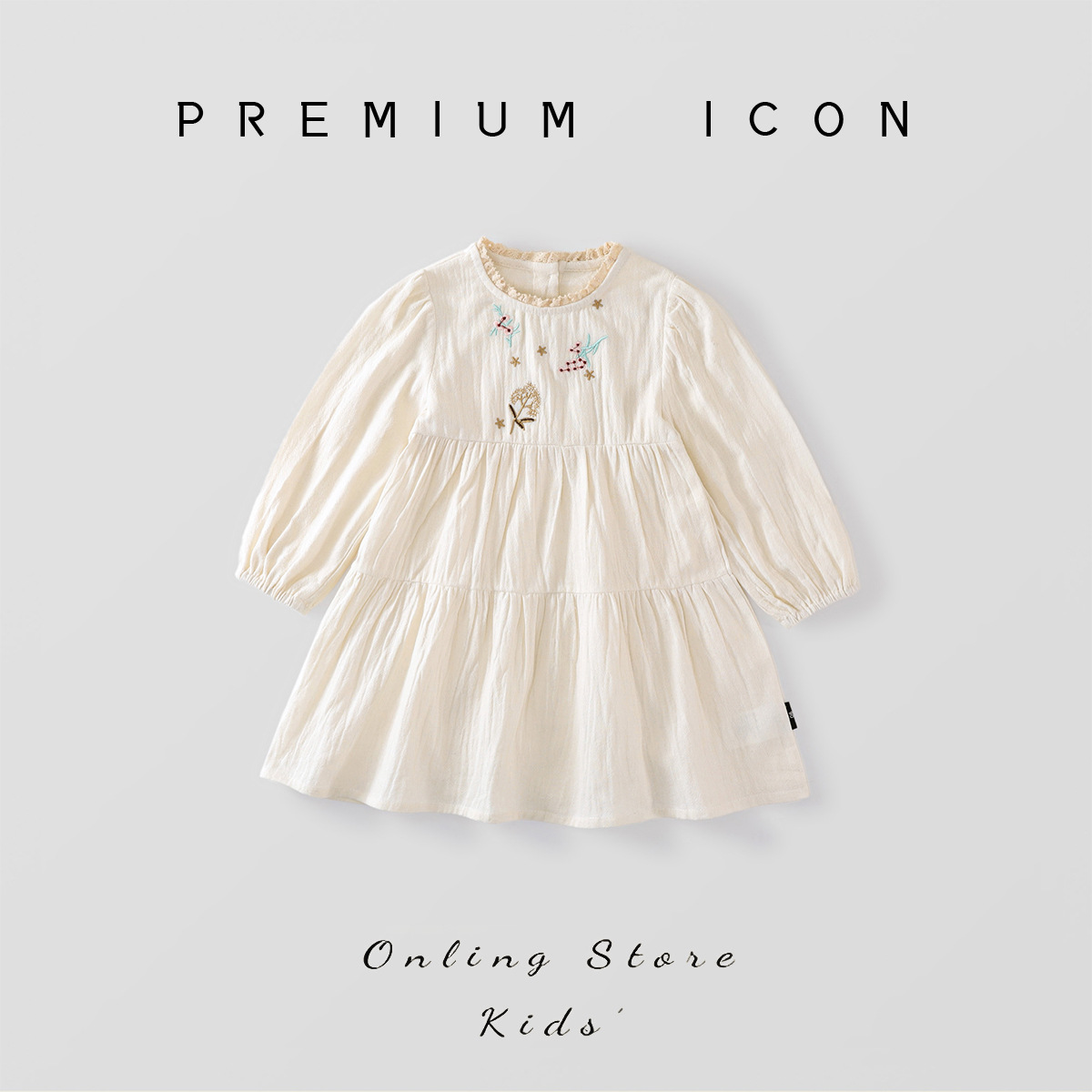 여자 목가적 스타일 작은 신선한 긴팔 드레스 2025 가을 새로운 아기 순수 코튼 수 놓은 공주 드레스 Dropshipping스토어 가기