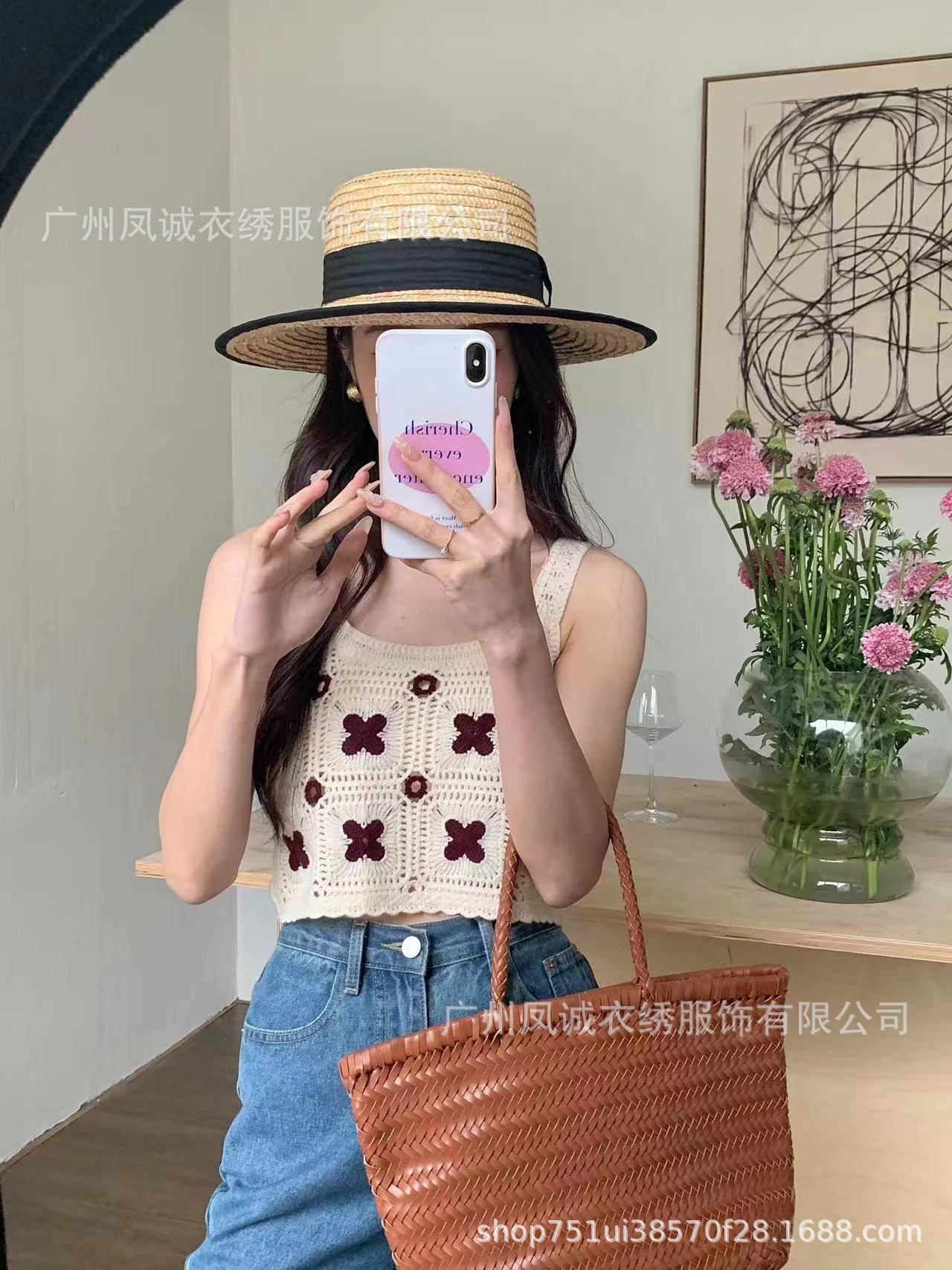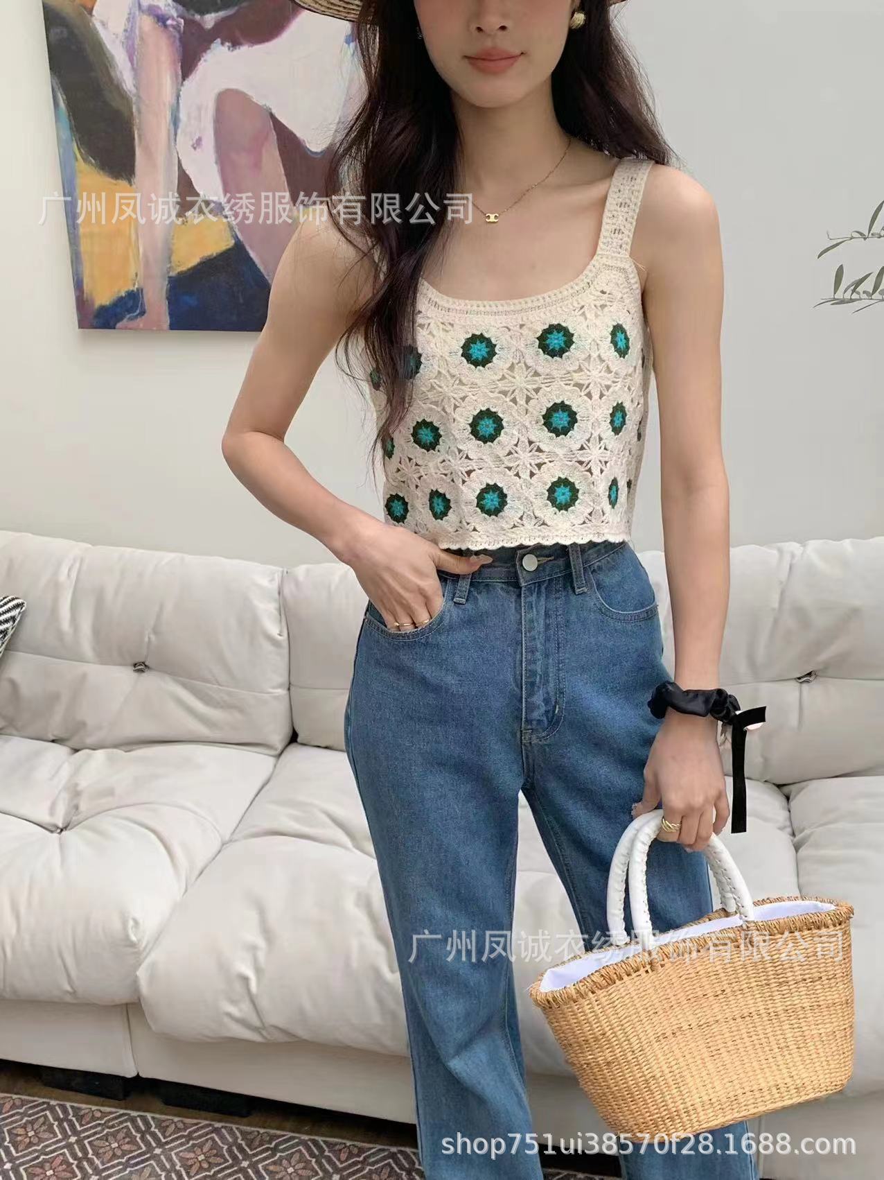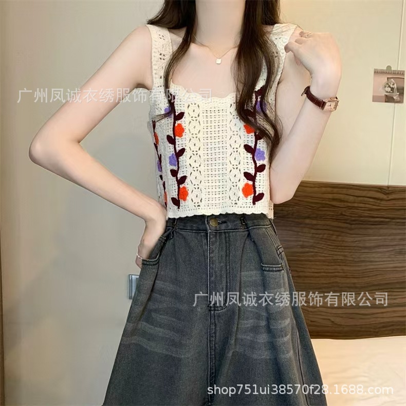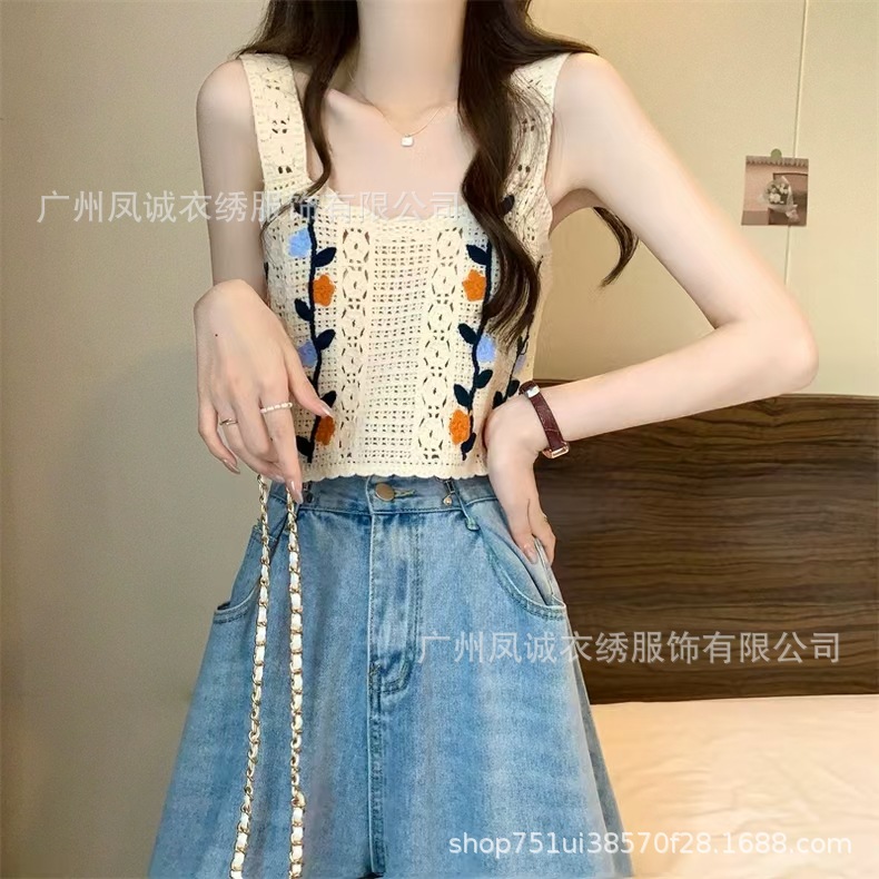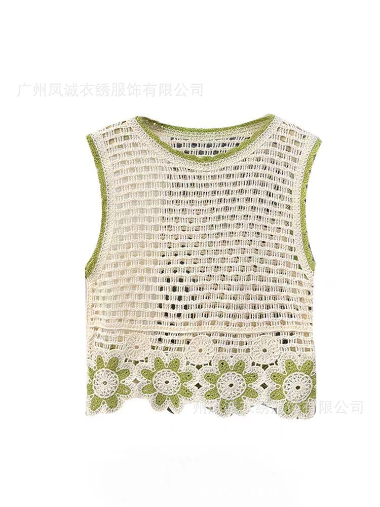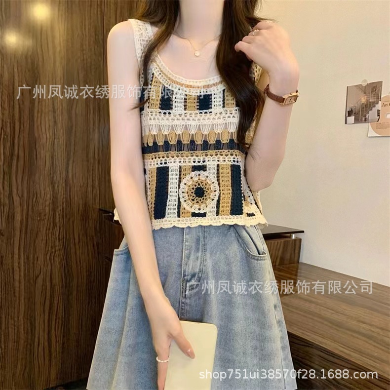 민소매 니트 조끼 봄과 여름 외부 착용 할로우 얇은 3 차원 꽃 보헤미안 민족 스타일 여성용 쇼트 탑스토어 가기