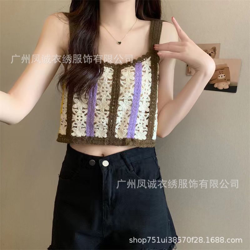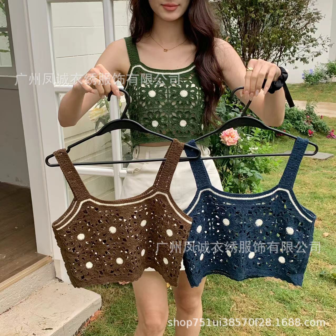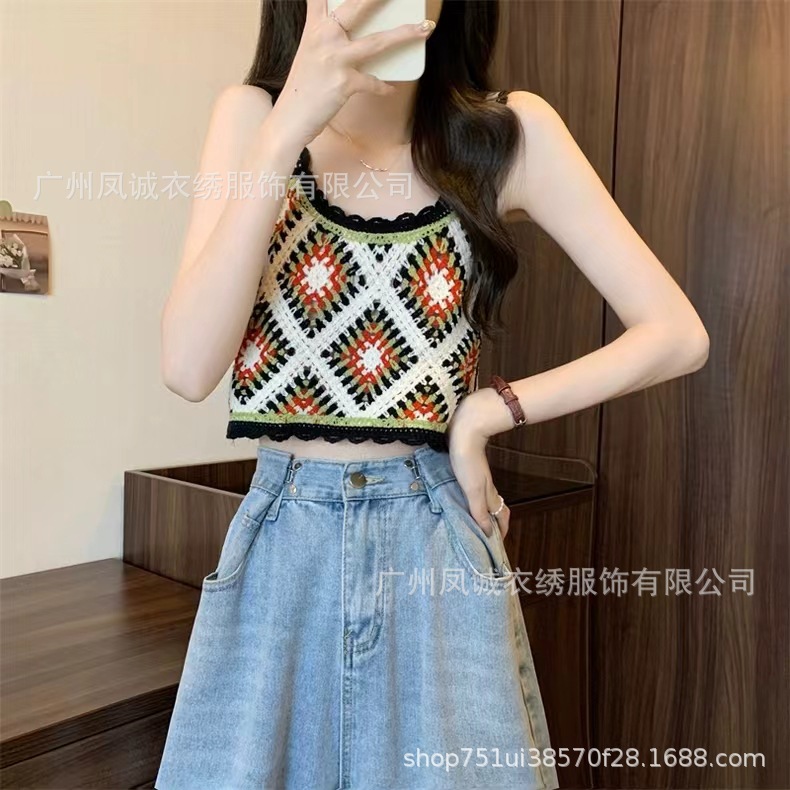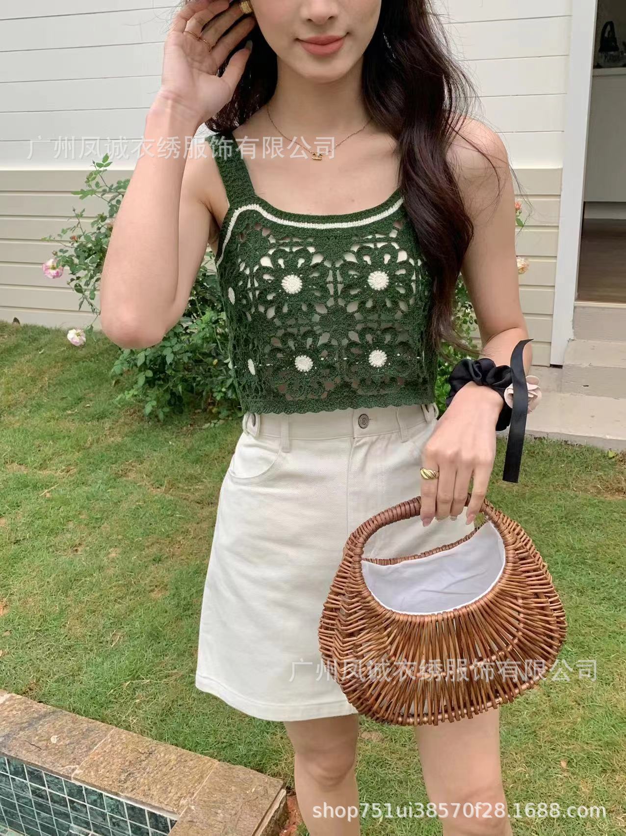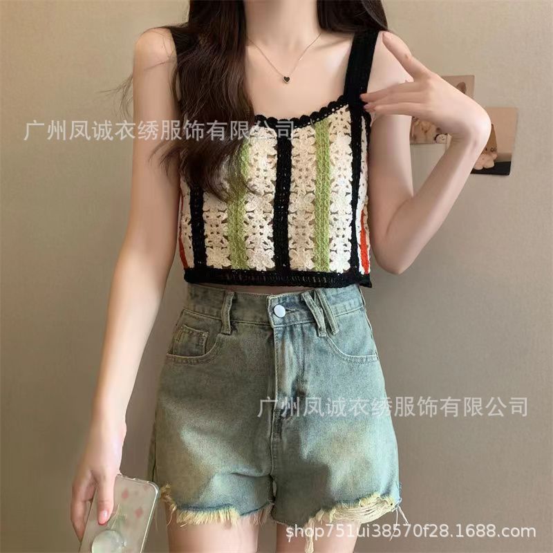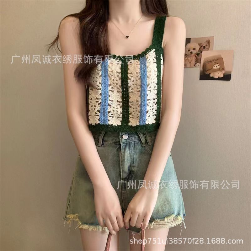 민소매 니트 조끼 봄과 여름 외부 착용 할로우 얇은 3 차원 꽃 보헤미안 민족 스타일 여성용 쇼트 탑스토어 가기