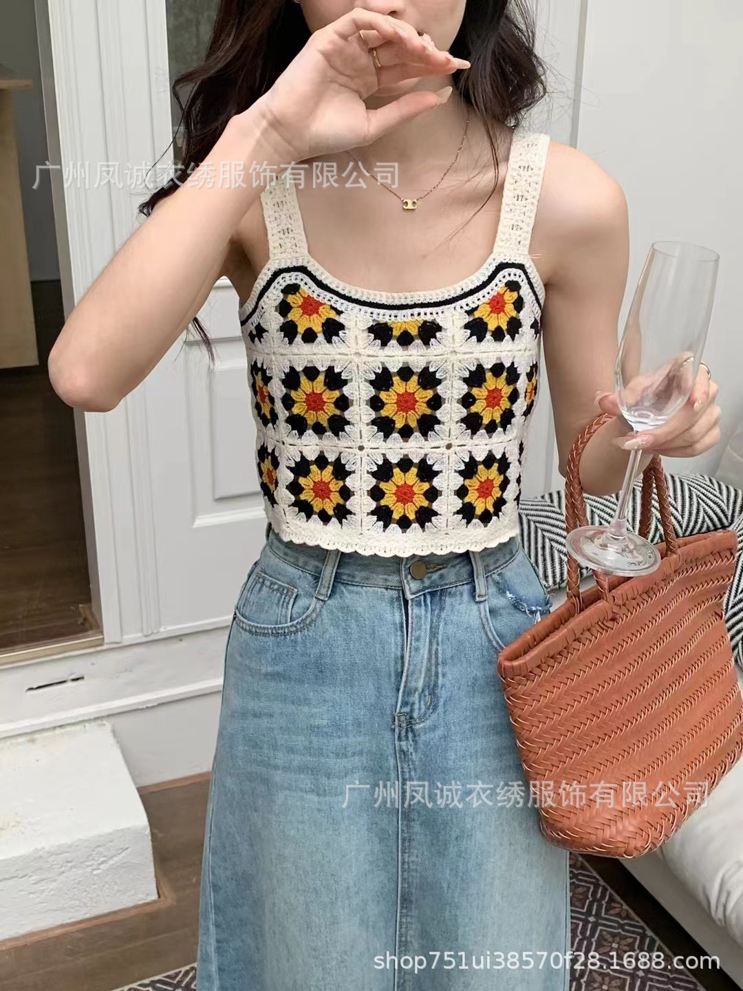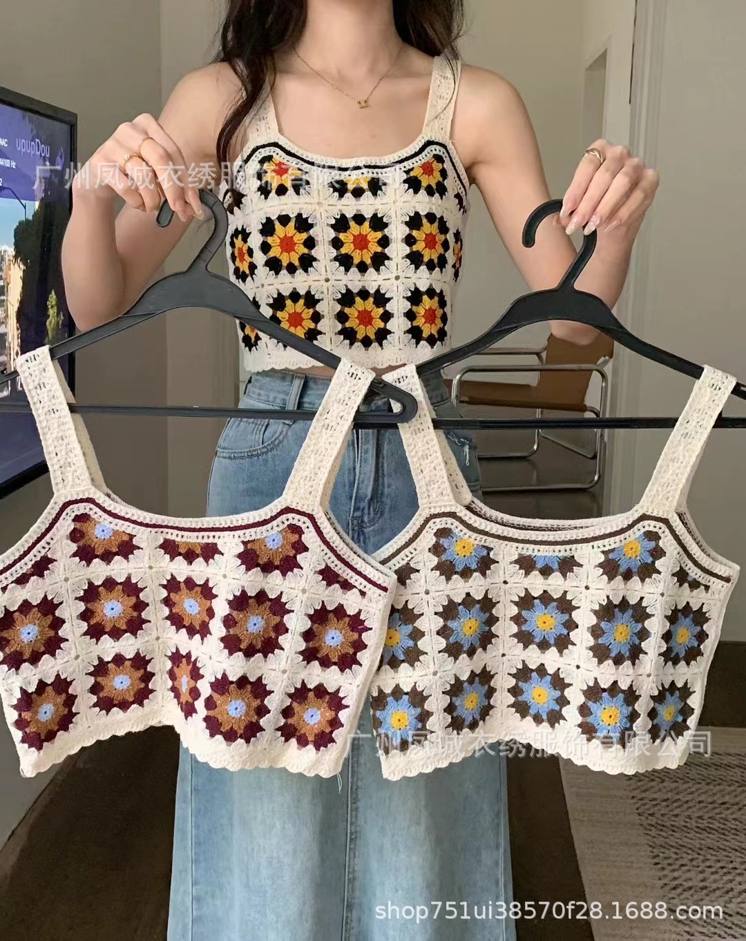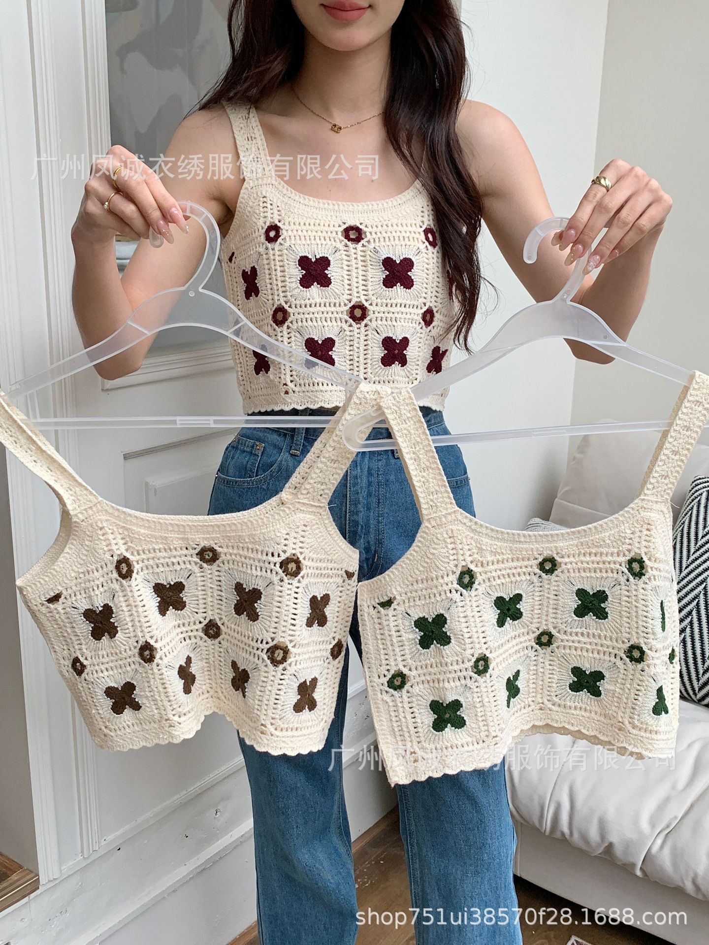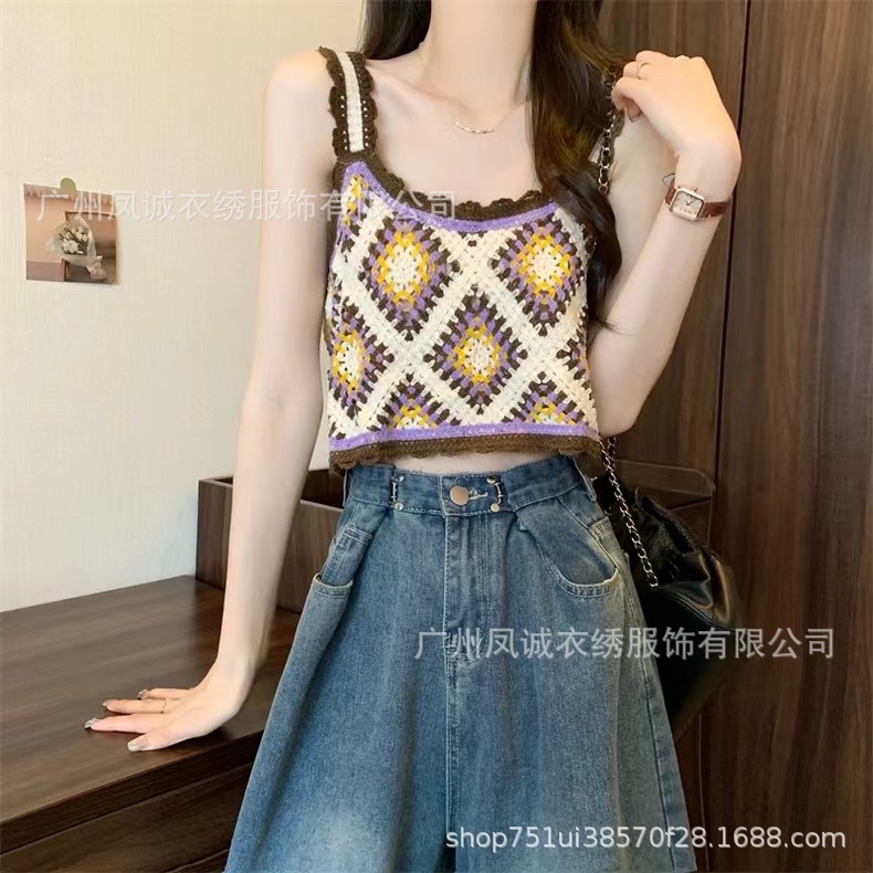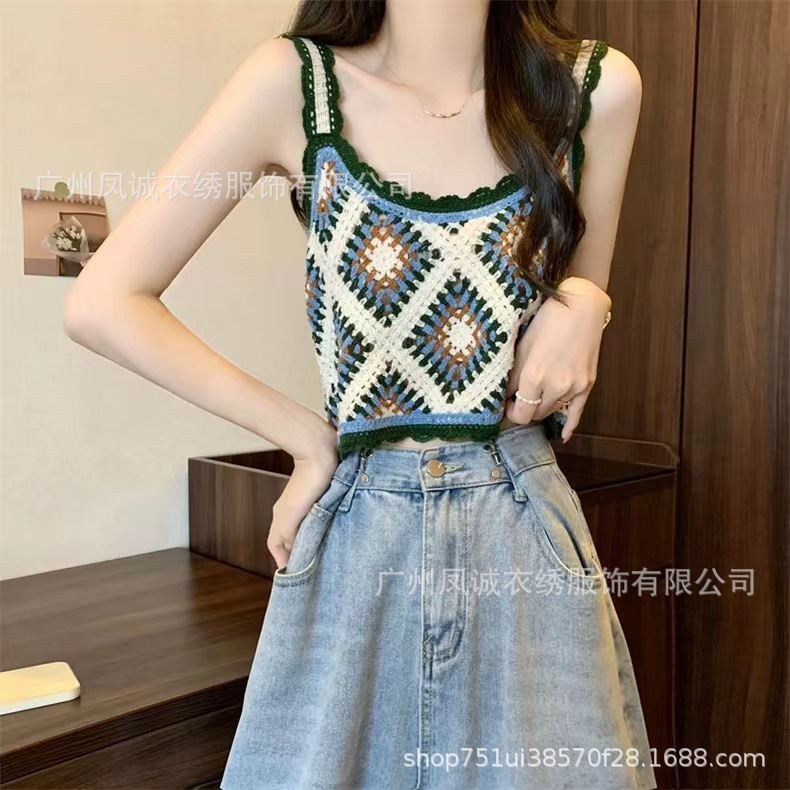 민소매 니트 조끼 봄과 여름 외부 착용 할로우 얇은 3 차원 꽃 보헤미안 민족 스타일 여성용 쇼트 탑스토어 가기
