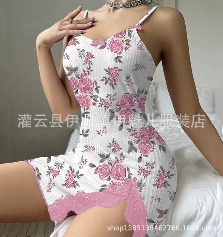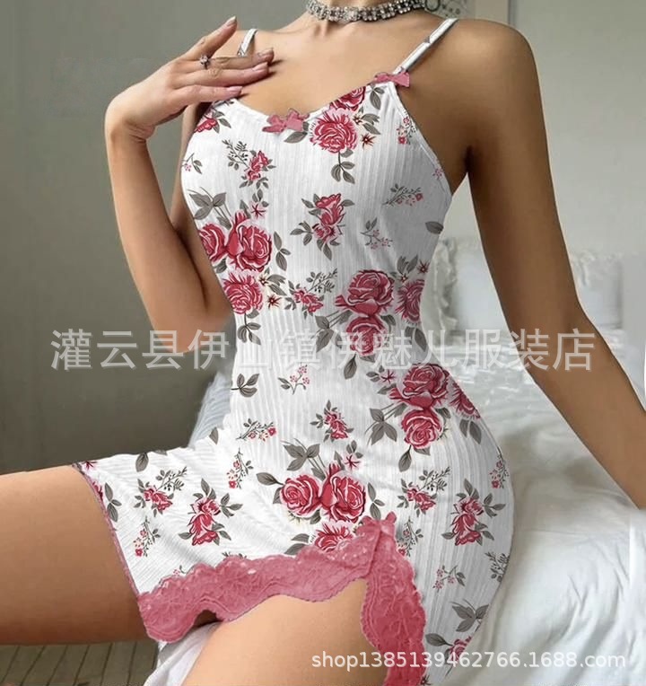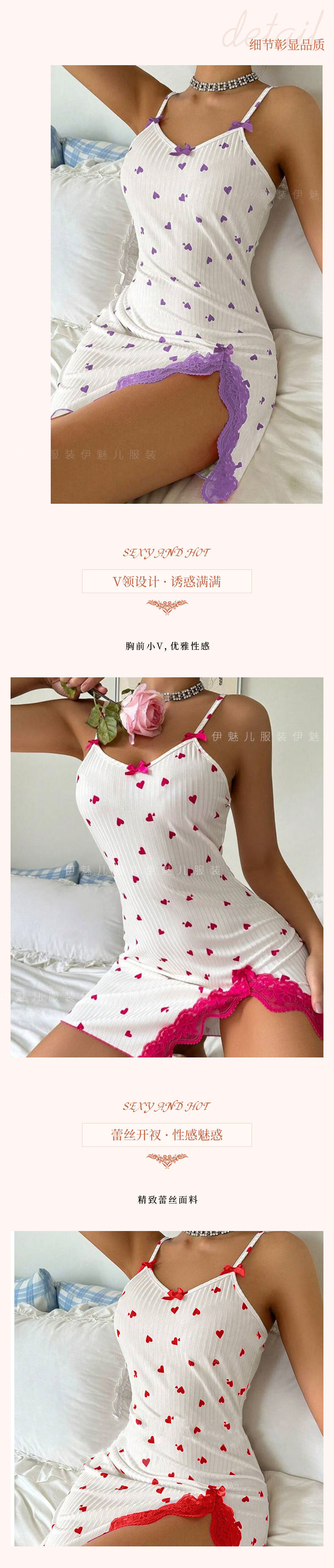 아마존 새로운 도착 하트 모양의 인쇄 대비 홈 옷 분할 레이스 활 슬립 스커트 5046스토어 가기