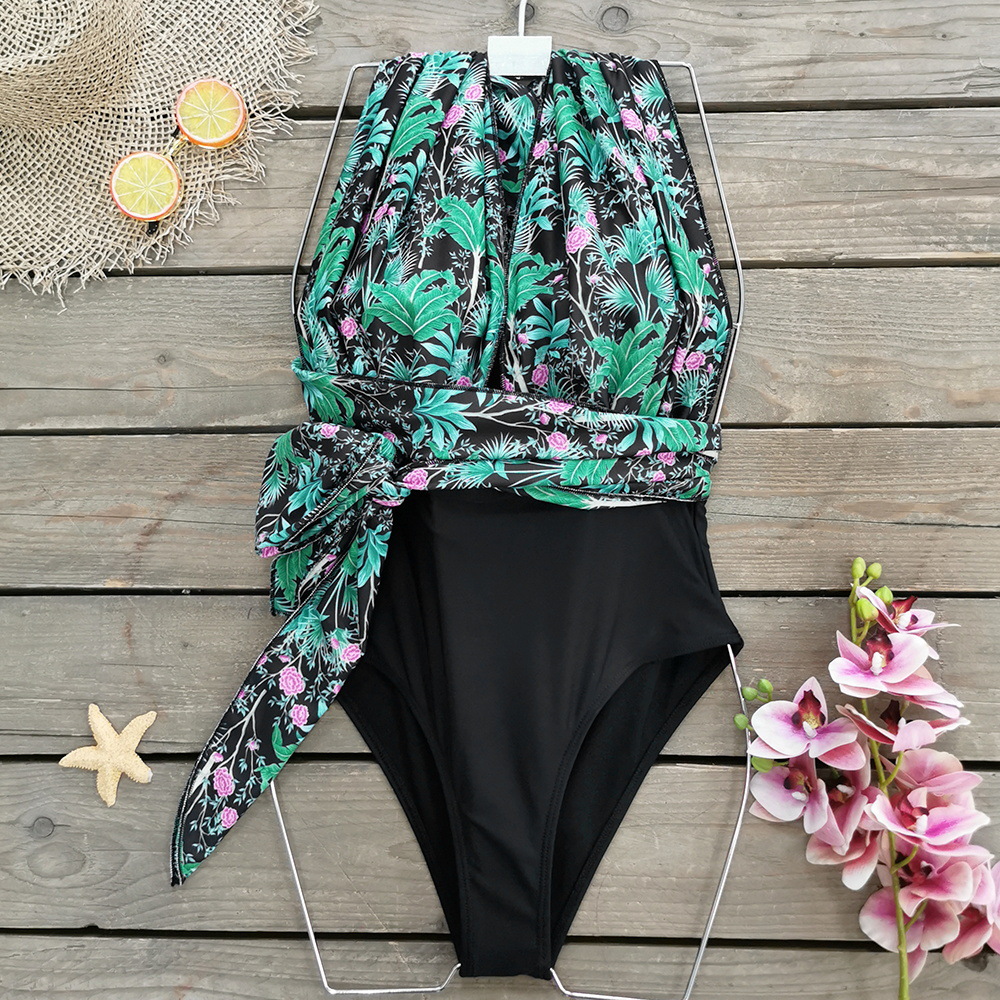 인쇄 깊은 V 스트랩 섹시한 백리스 멀티 웨어 원피스 수영복 여성의 2024 새로운 국경 간 대외 무역 AliExpress