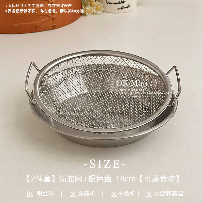 • [2종세트] 기름배수망 + 은접시 - 18cm [음식찜 가능]