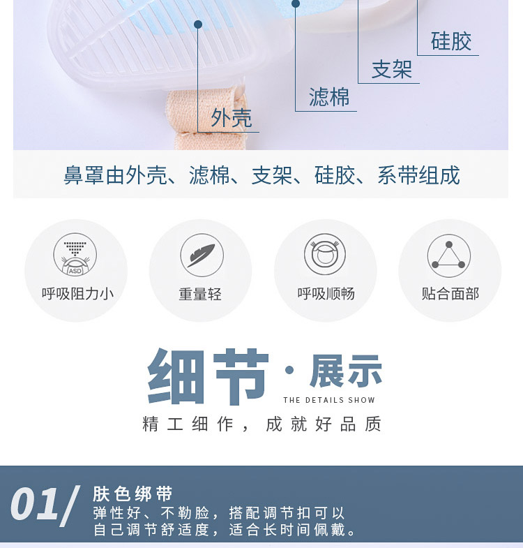 • 新工艺鼻罩+50片活性炭纤维滤棉✦