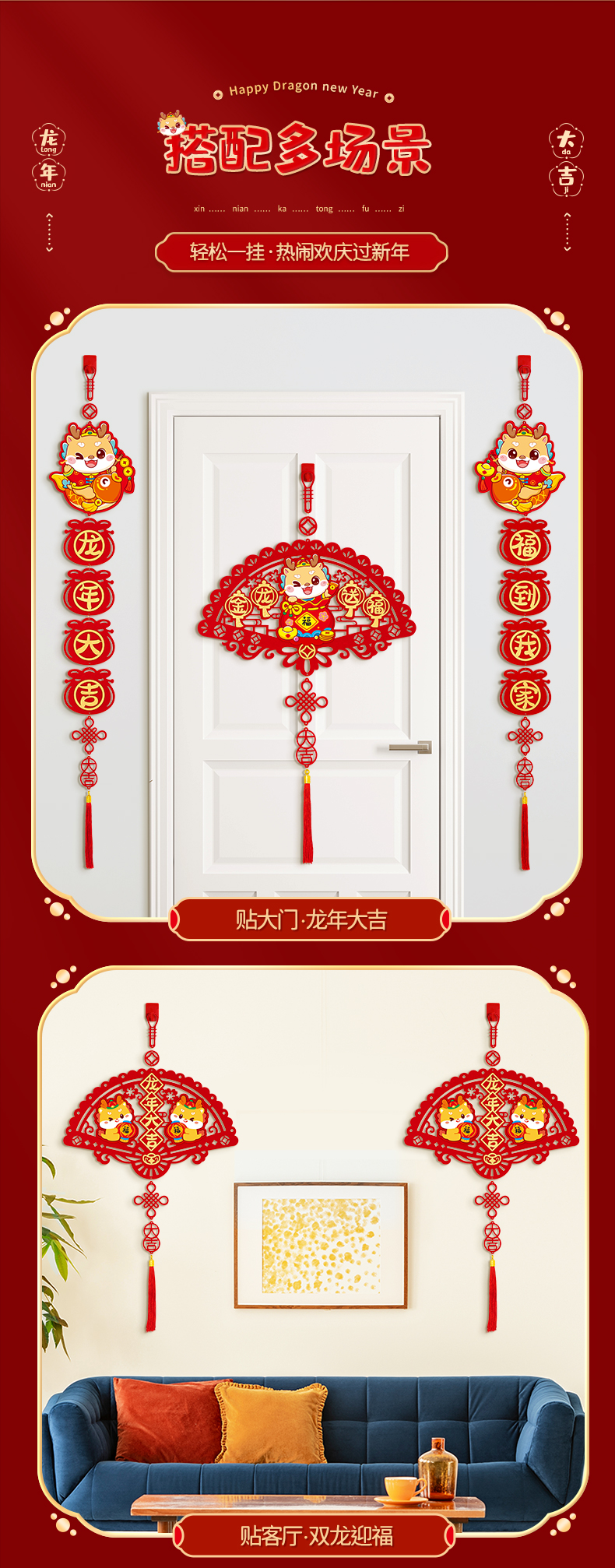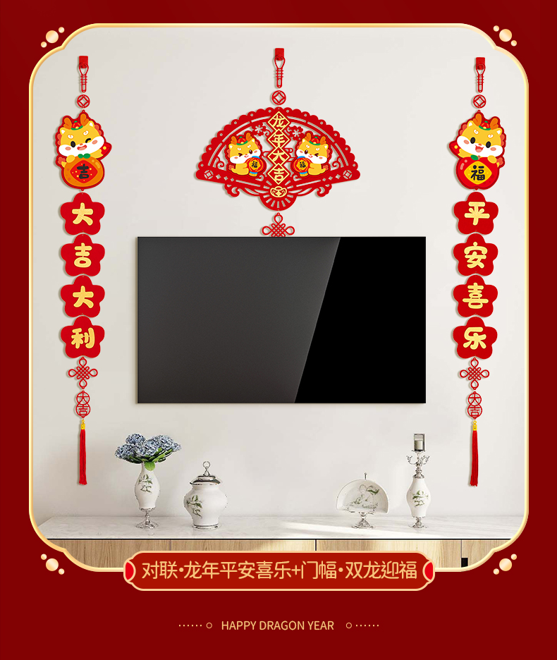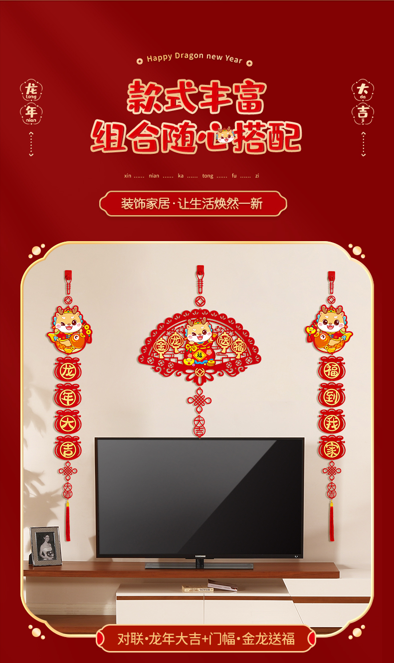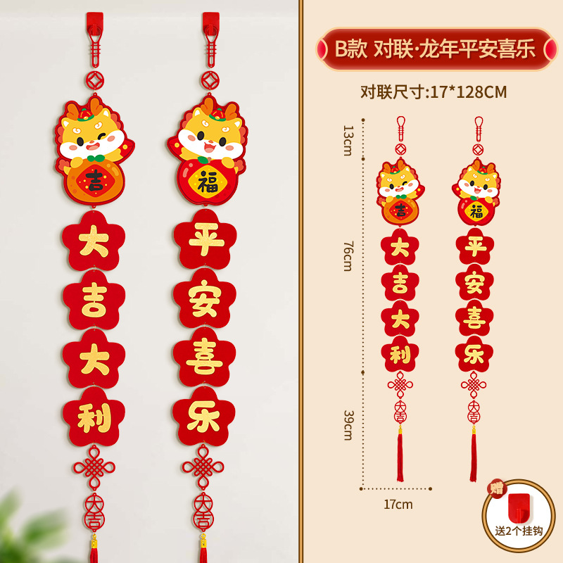 커플 2024 새 드래곤 년 작은 봄 축제 커플 새해 장식 4 자 펜던트 거실 침실 문 새해 봄 축제 변경스토어 가기