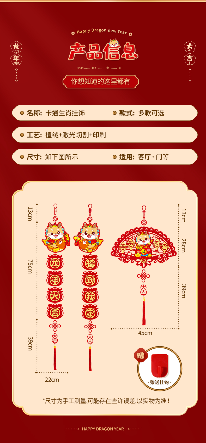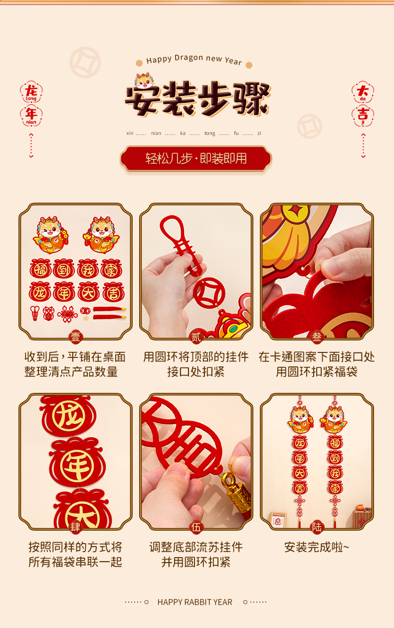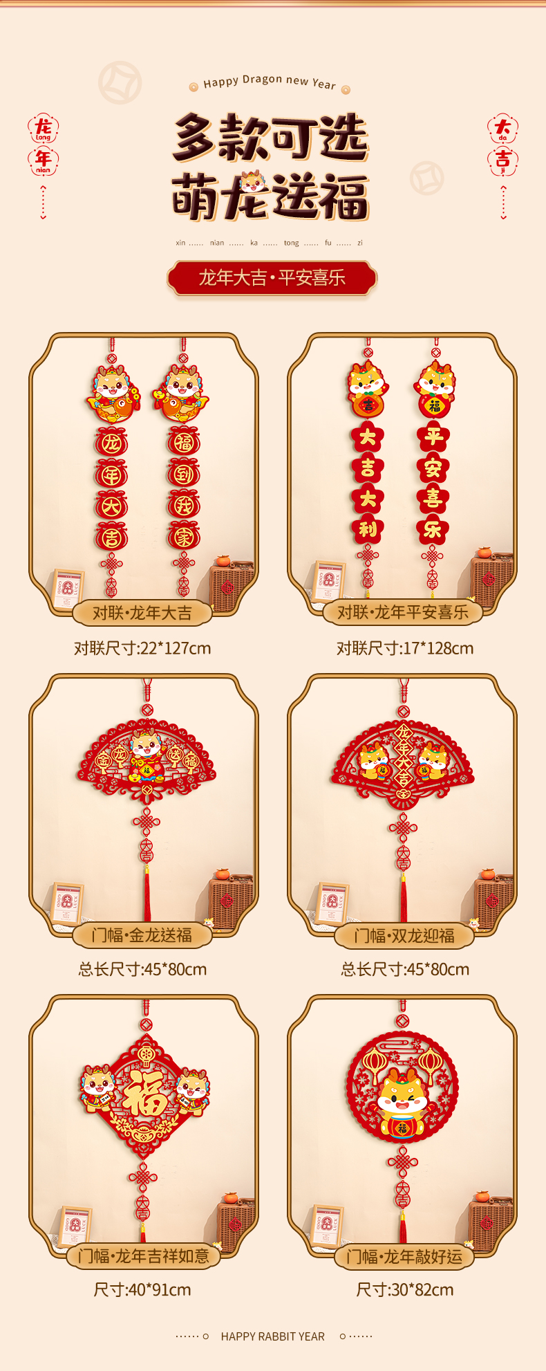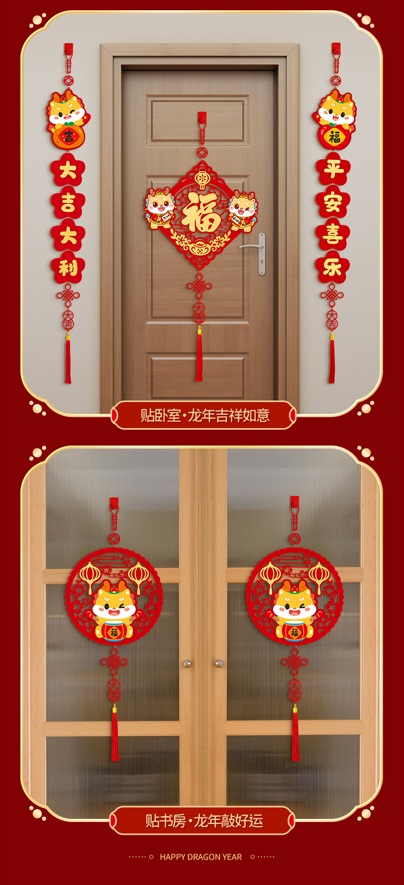 커플 2024 새 드래곤 년 작은 봄 축제 커플 새해 장식 4 자 펜던트 거실 침실 문 새해 봄 축제 변경스토어 가기