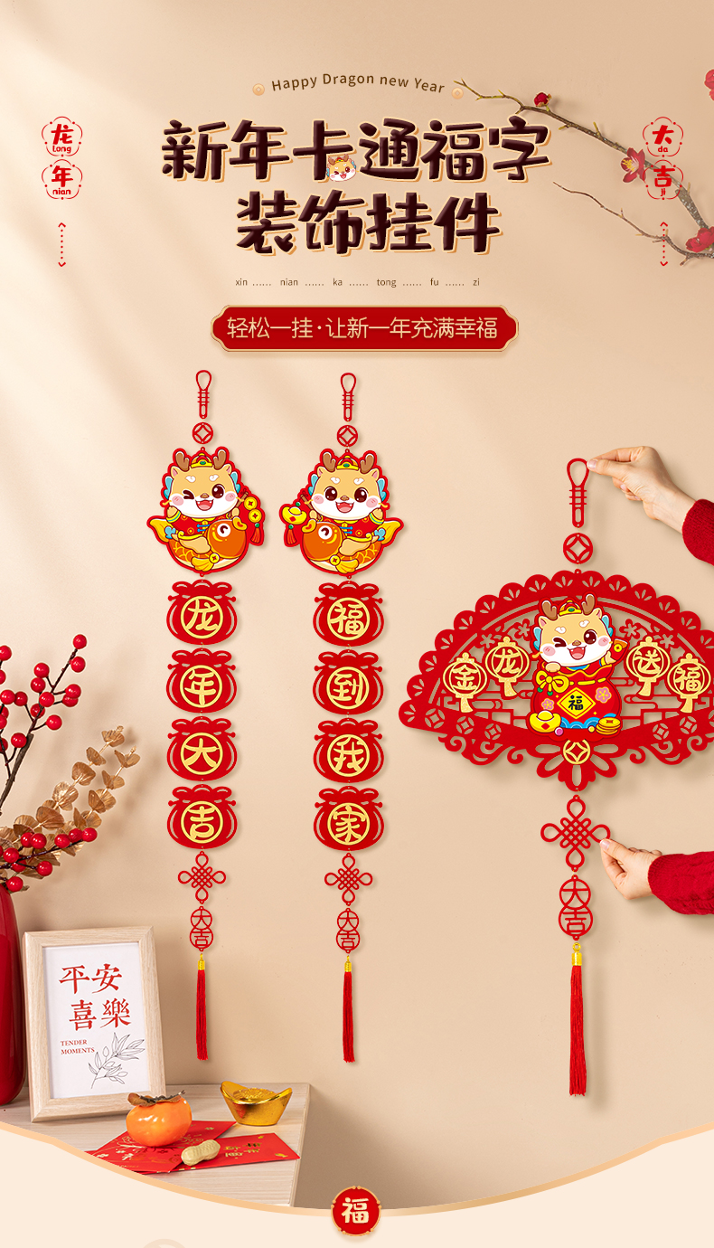 커플 2024 새 드래곤 년 작은 봄 축제 커플 새해 장식 4 자 펜던트 거실 침실 문 새해 봄 축제 변경