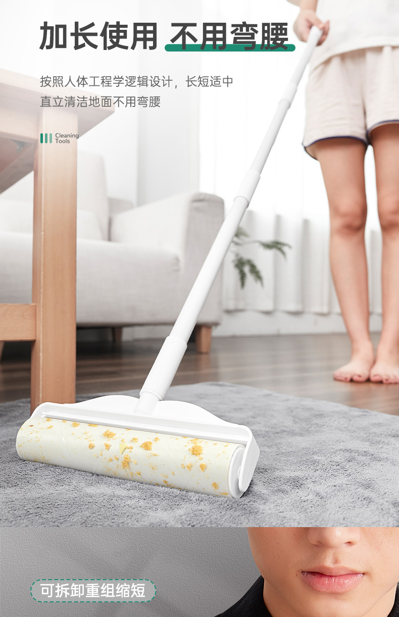 머리 스티커 롤러 가정용 큰 긴 막대 롤러 브러시 바닥 먼지 고정 청소 흡입 스틱 교체 종이 머리 변경스토어 가기