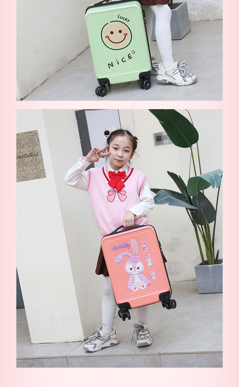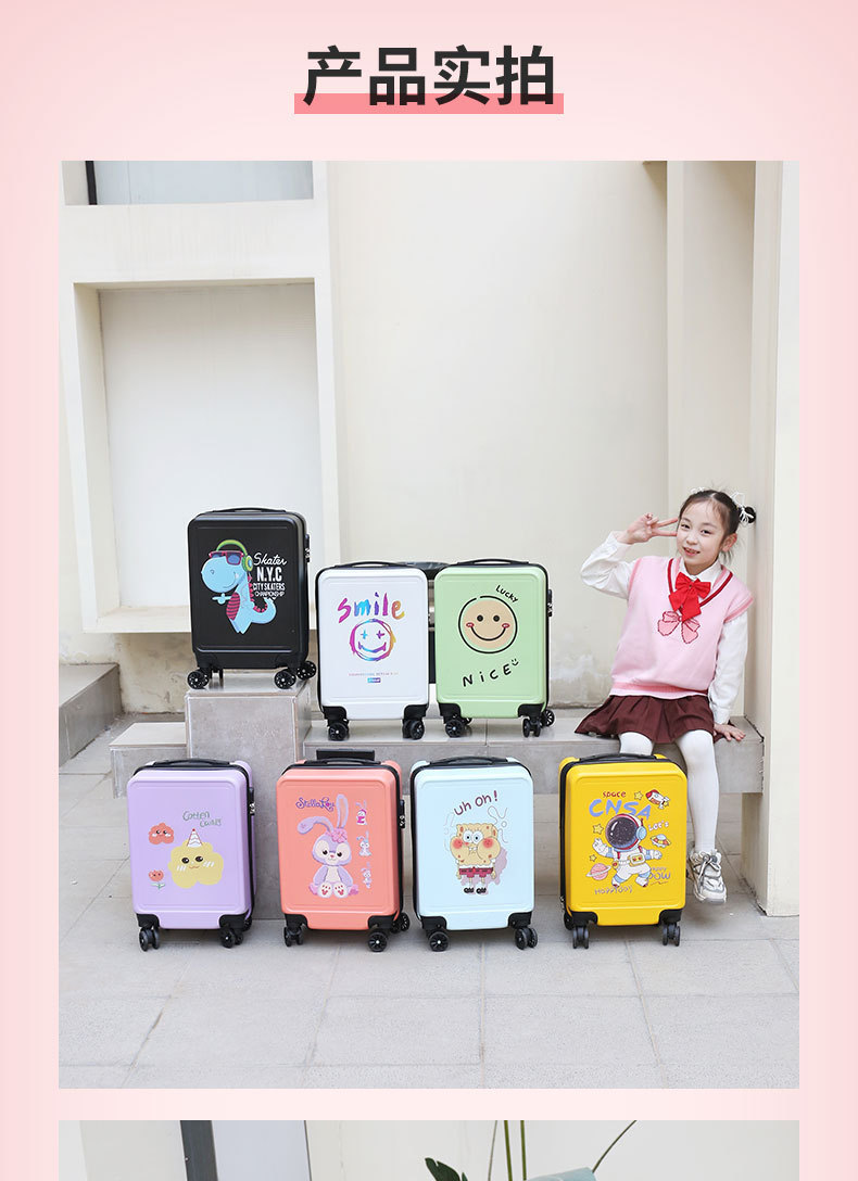 새로운 귀여운 만화 수화물 인쇄 로고 패턴 수하물 케이스 야외 유니버설 휠 가방 제조 업체 도매스토어 가기