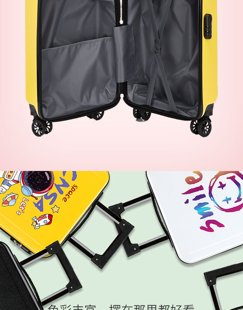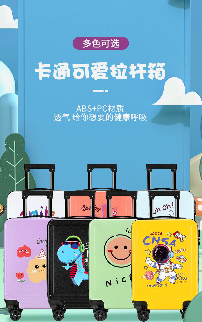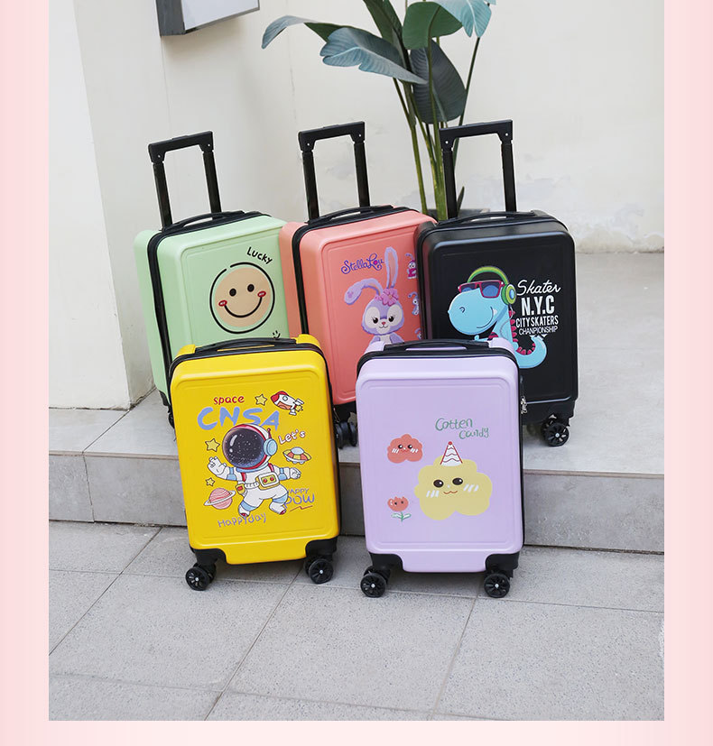 새로운 귀여운 만화 수화물 인쇄 로고 패턴 수하물 케이스 야외 유니버설 휠 가방 제조 업체 도매